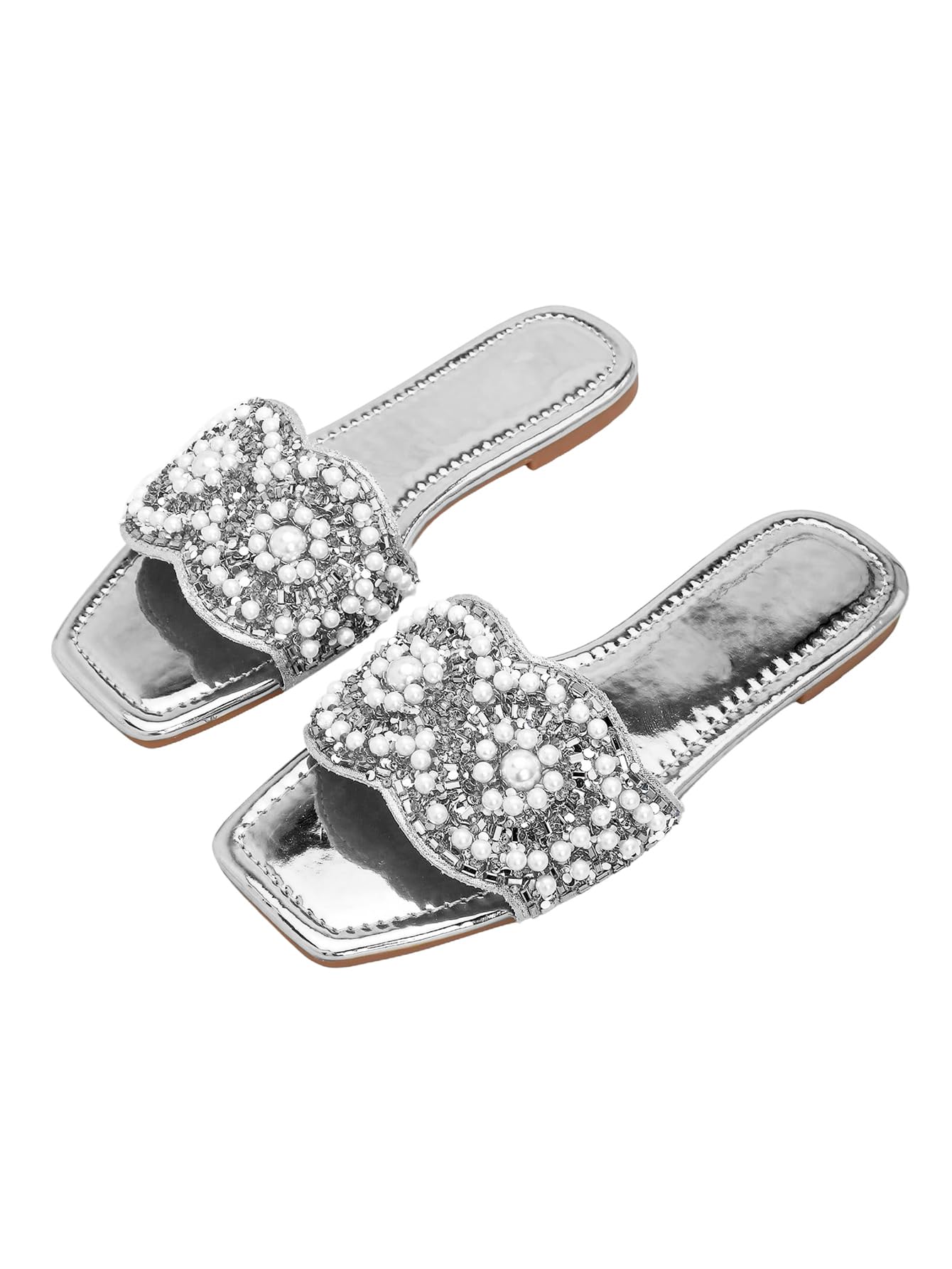 GORGLITTER Women's Gold Sparkly Flat San... |