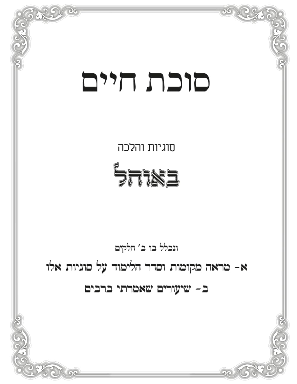 מ״מ ושיעורים בהלכות אוהל בשבת: סוכת חיים... |