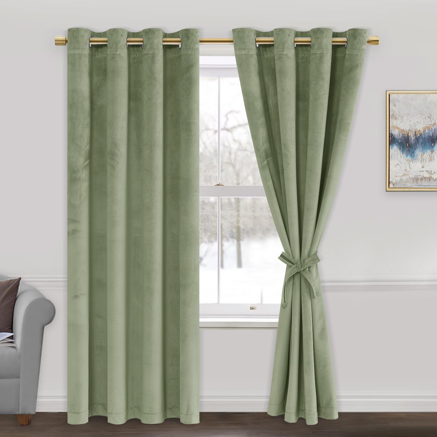 JIUZHEN Sage Green Velvet Curtains 72 in... |