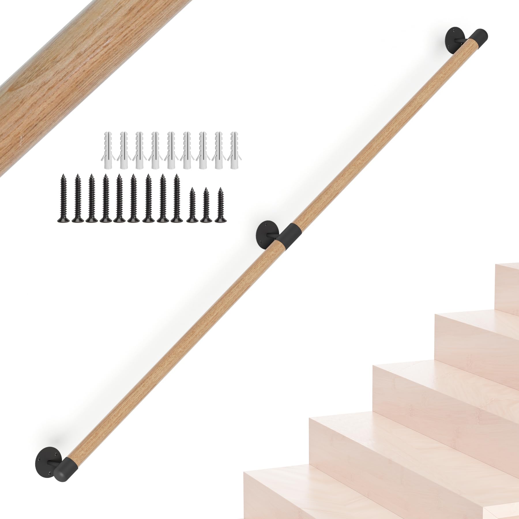 4FT Round Wooden Stair Handrail,Indoor S... |