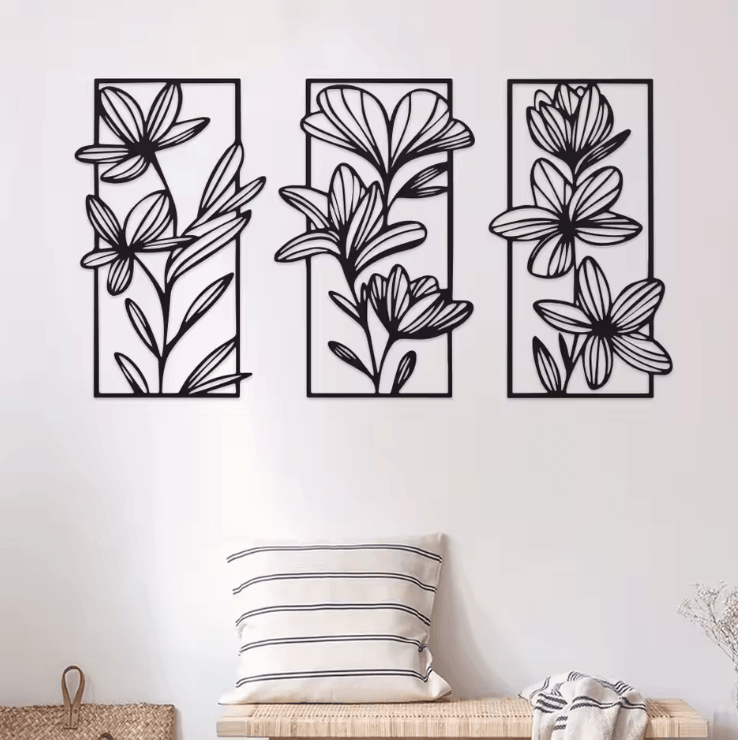3 Piece Metal Flower Wall Art Set Elegan... |