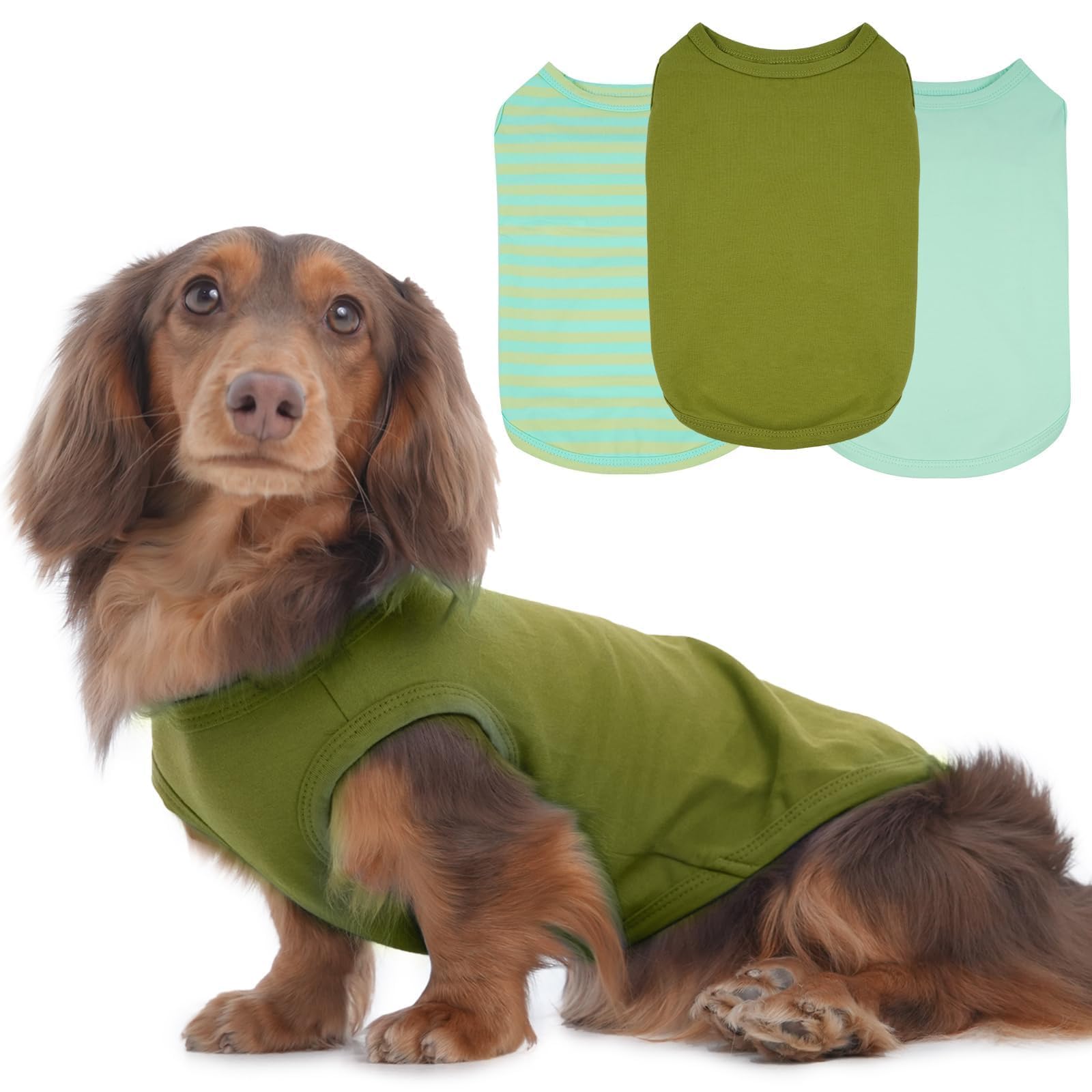 3 Pack Green Striped Dog T-Shirt for Sma... |