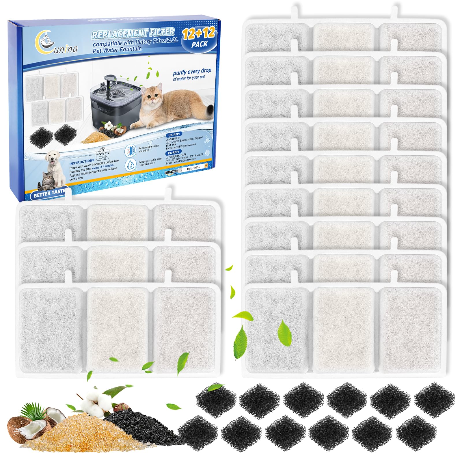 Cunina 24PCS Cat Fountain Filters - Comp... |