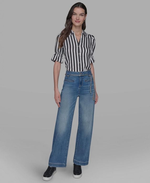 Petite Chain Belt High Rise Wide Leg Jea... |