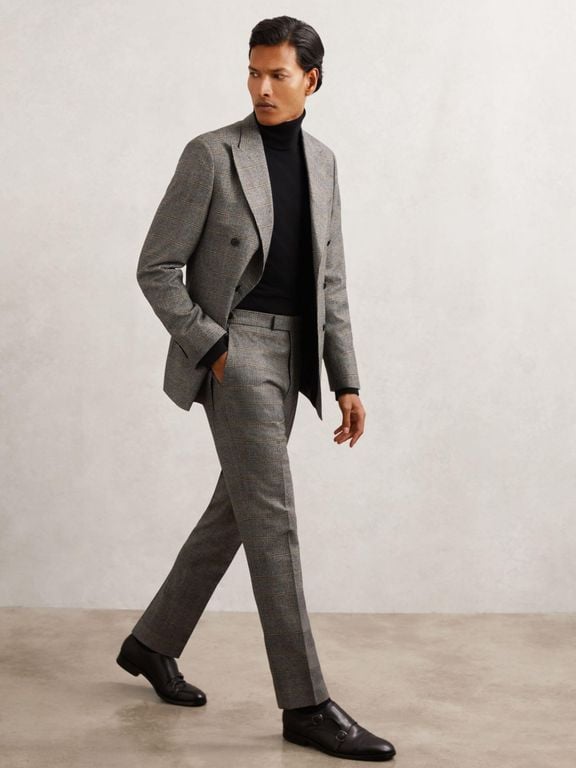 Wool Check Tailored-Fit Suit Trousers - ... |