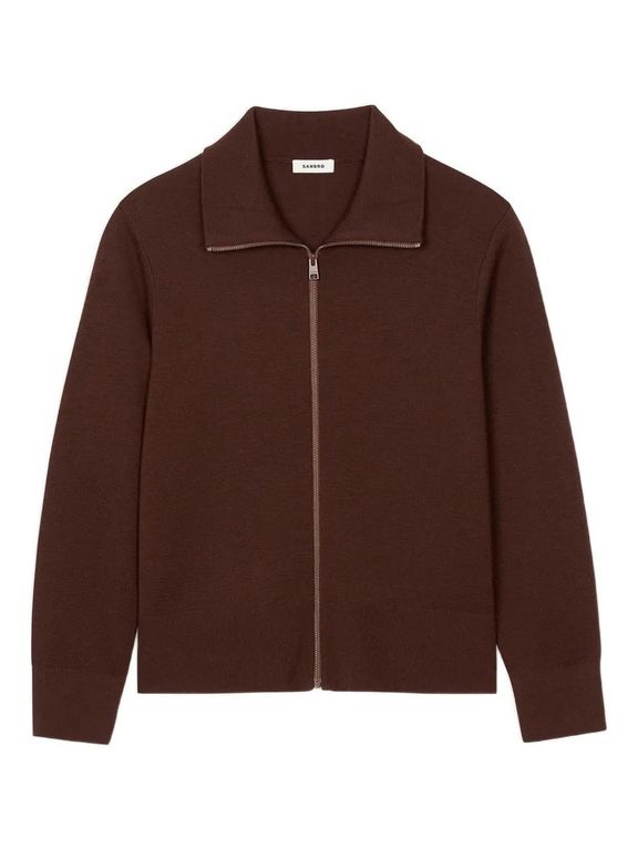 High-Neck Zip-Up Cardigan - Brown - Sand... |