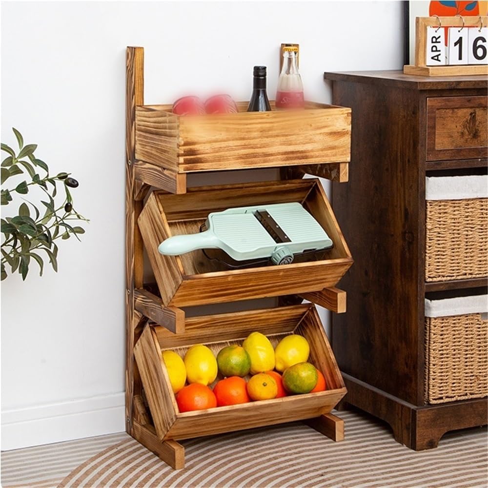 Ehzgqneg 3-Tier Basket Stand, Wooden Flo... |