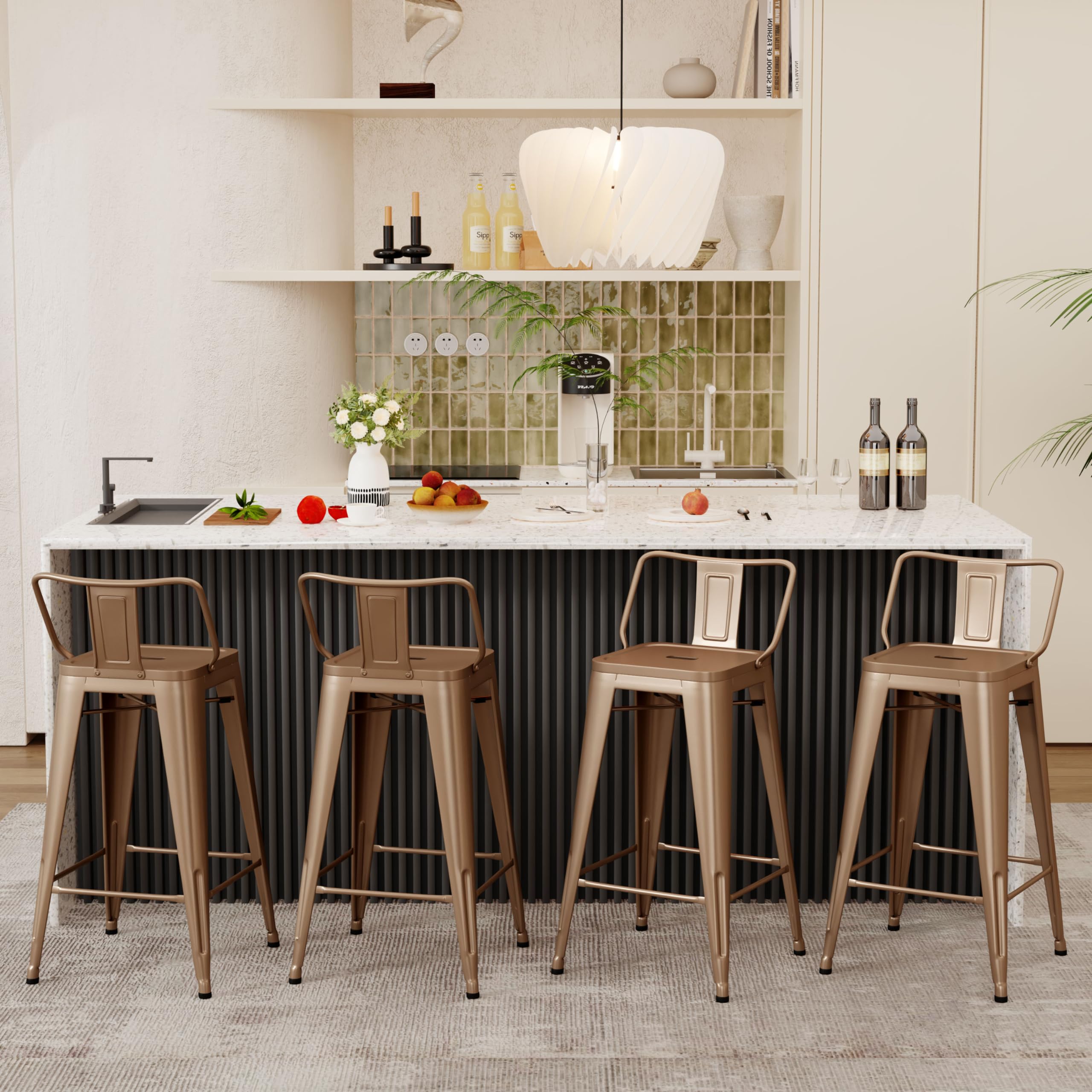 Alunaune 24" Metal Bar Stools Set of 4 C... |