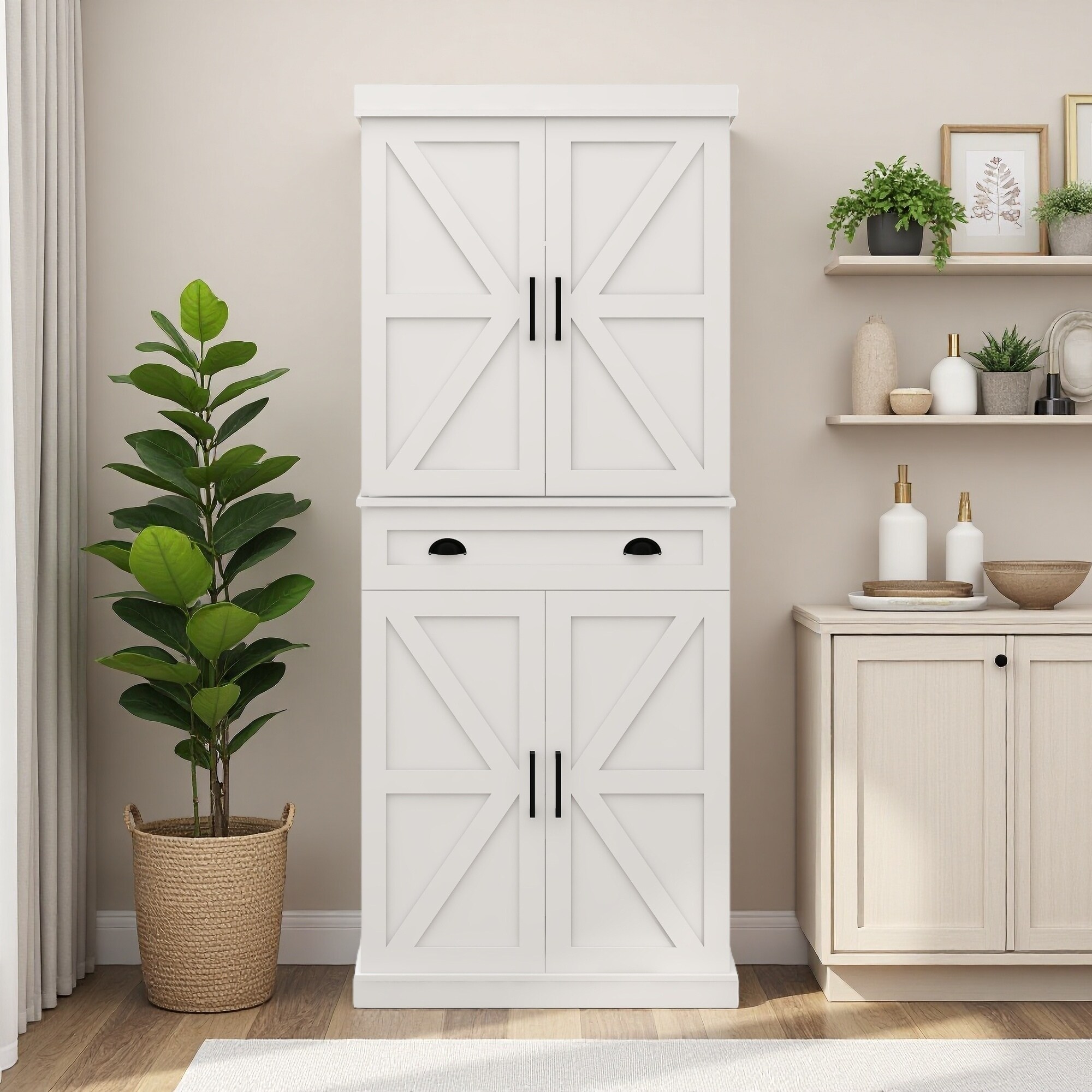 71" MDF Pantry Cabinet with Door Racks, ... |