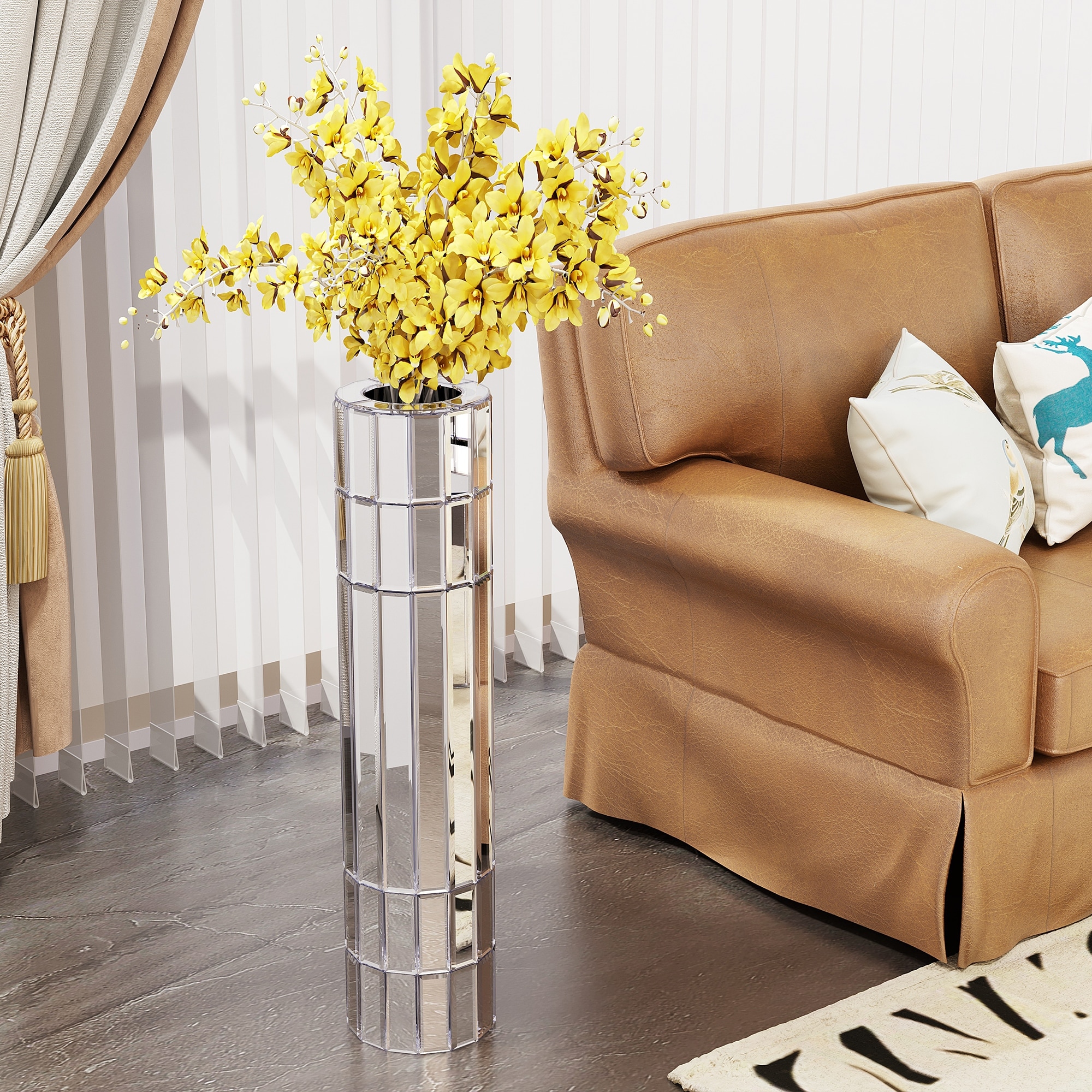 Large Floor Vase, Silver Octagonal Mirro... |