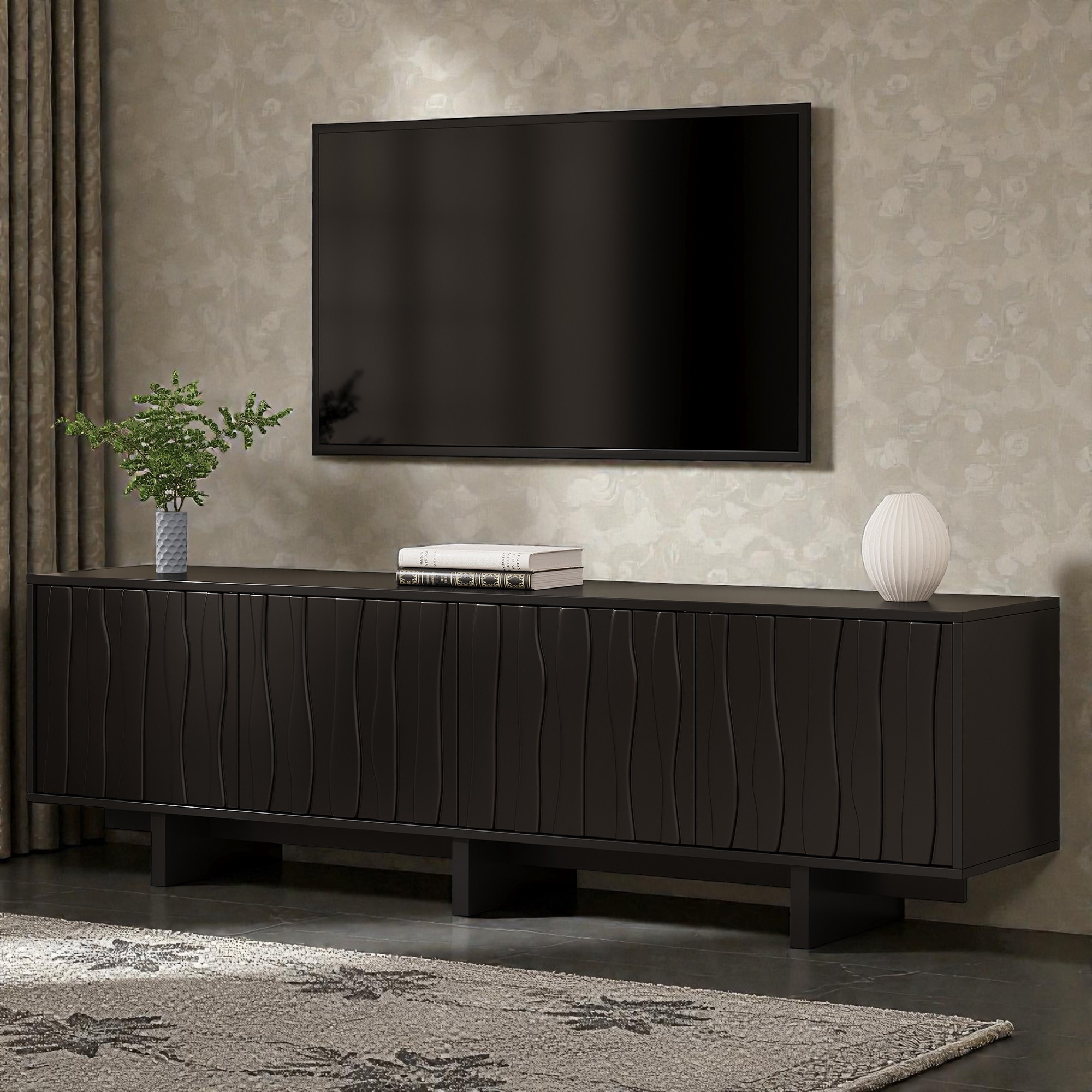 80" Particleboard Modern Black TV Stand ... |