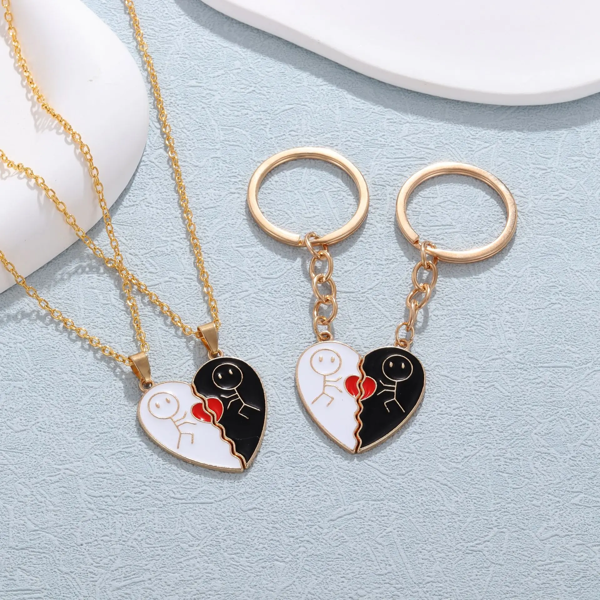 Couple Magnetic Necklace Stickman Heart ... |