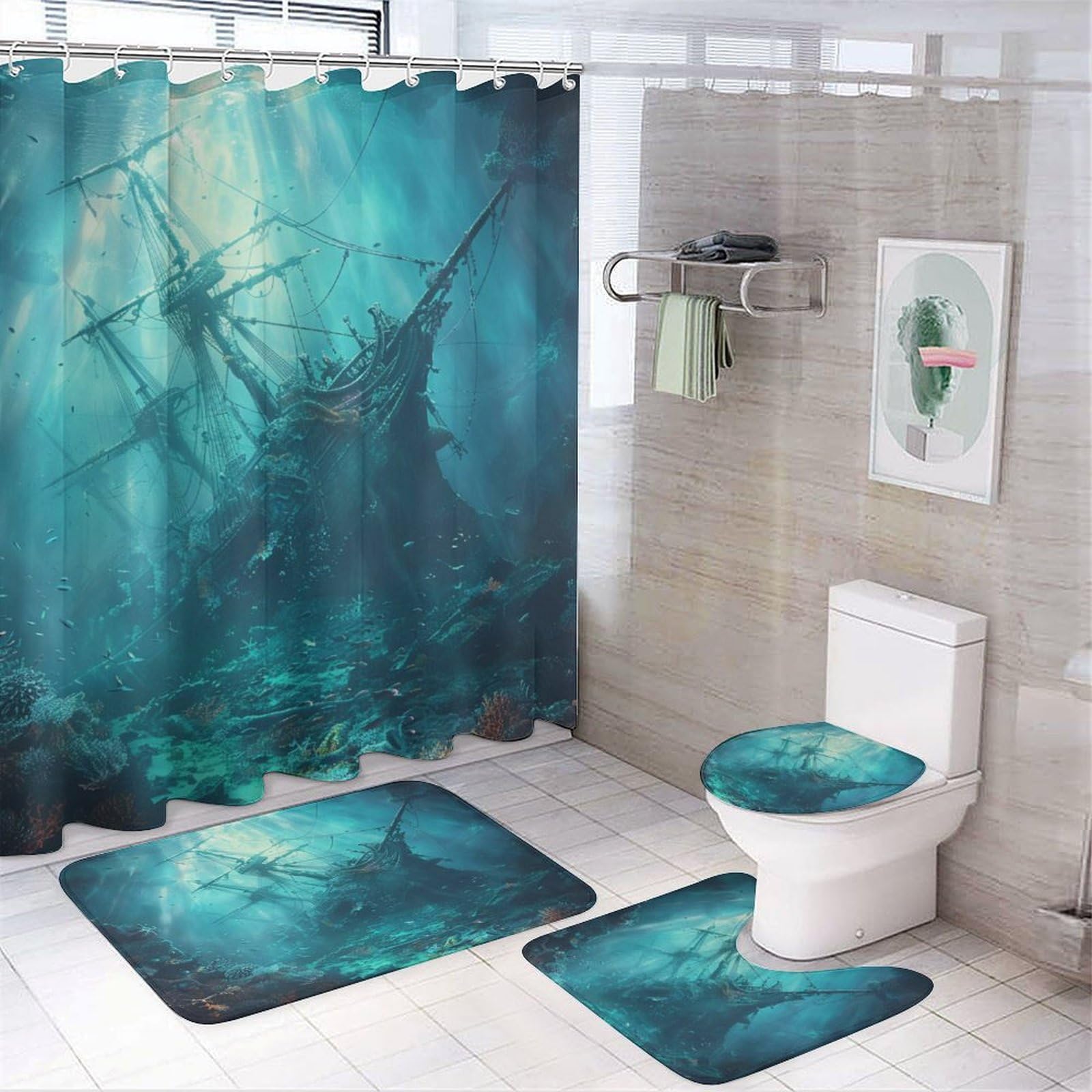 TOWINSFB 4Pcs Ancient Pirate Ship Shower... |