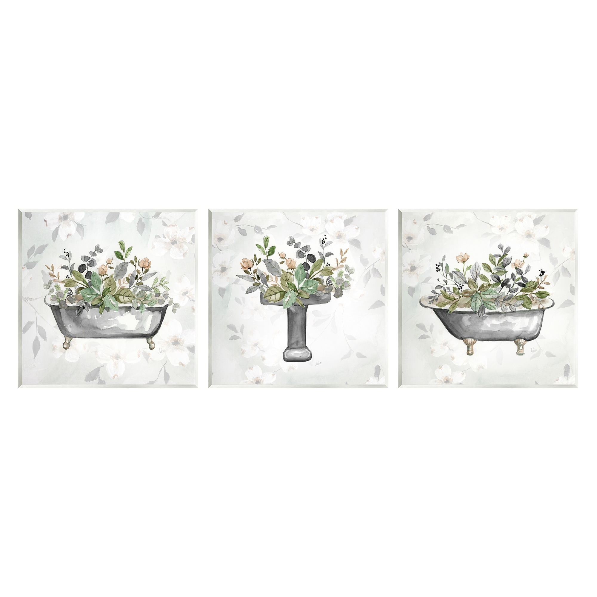 Stupell Grey Bathroom Florals 3 Piece Wa... |