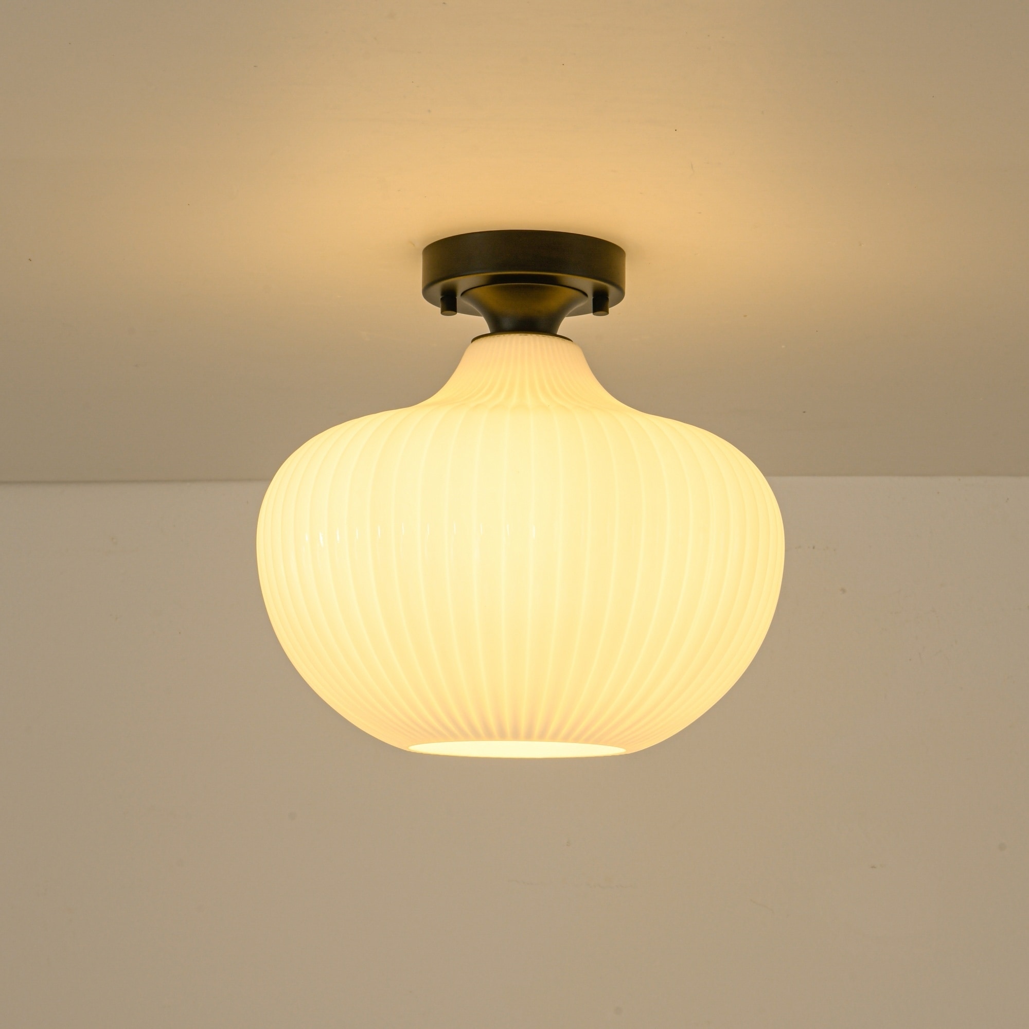 1-Light Modern Elegant Ribbed Glass Flus... |