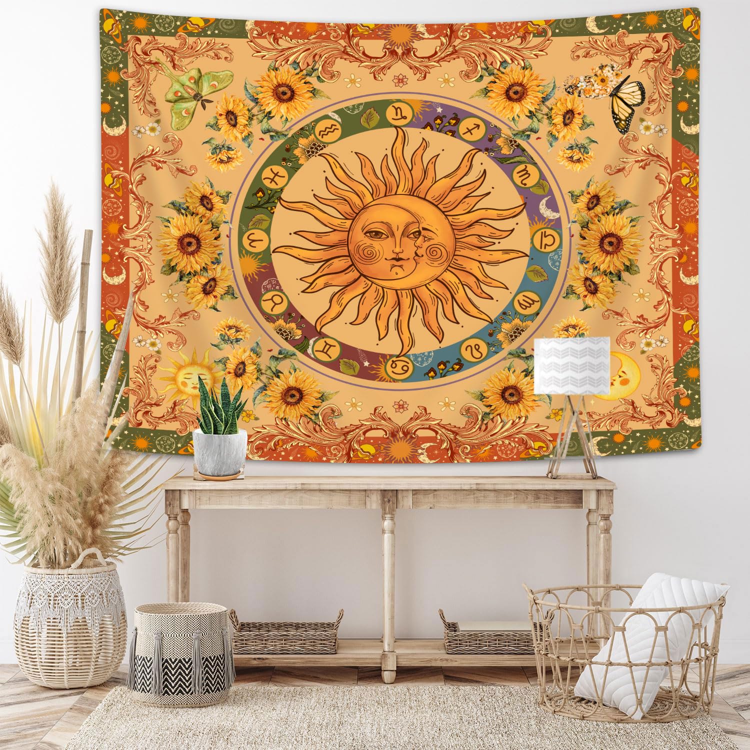 JAWO Mandala Floral Yellow Sun Moon Tape... |