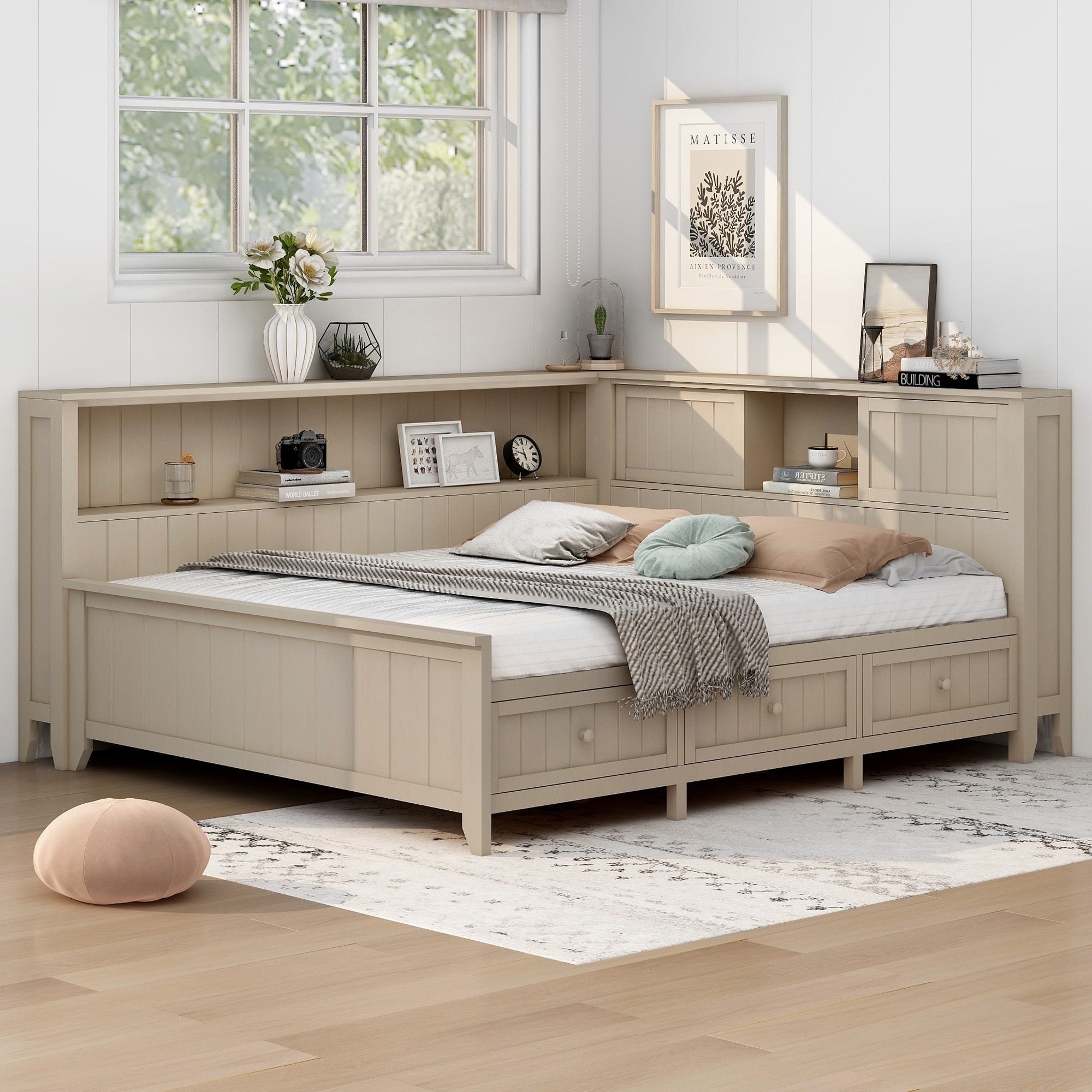 Wood Daybed with Storage Shelves and Dra... |