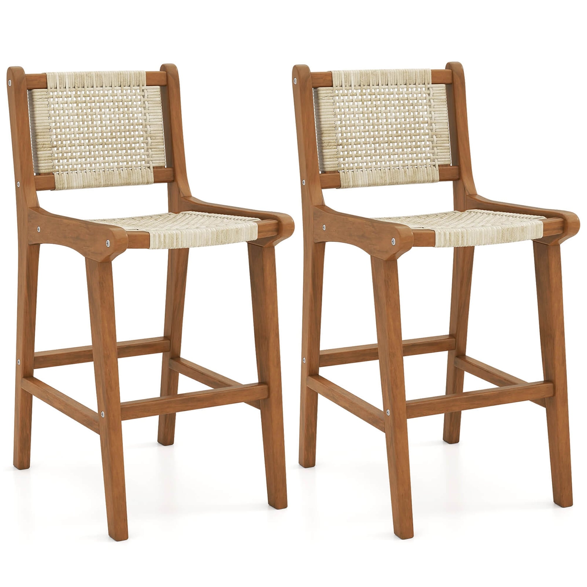Add sophistication to your room with our bar chair set of 2!The wooden kitchen island bar chairs are designed with a rounded seat, comfortable backrest and rubber wood footrests of 2 heights for ultimate relaxation.