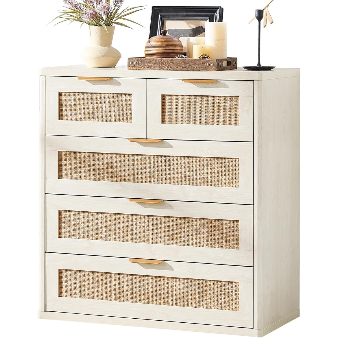 33.5 Inch Tall Modern 5-Drawer Boho Ratt... |