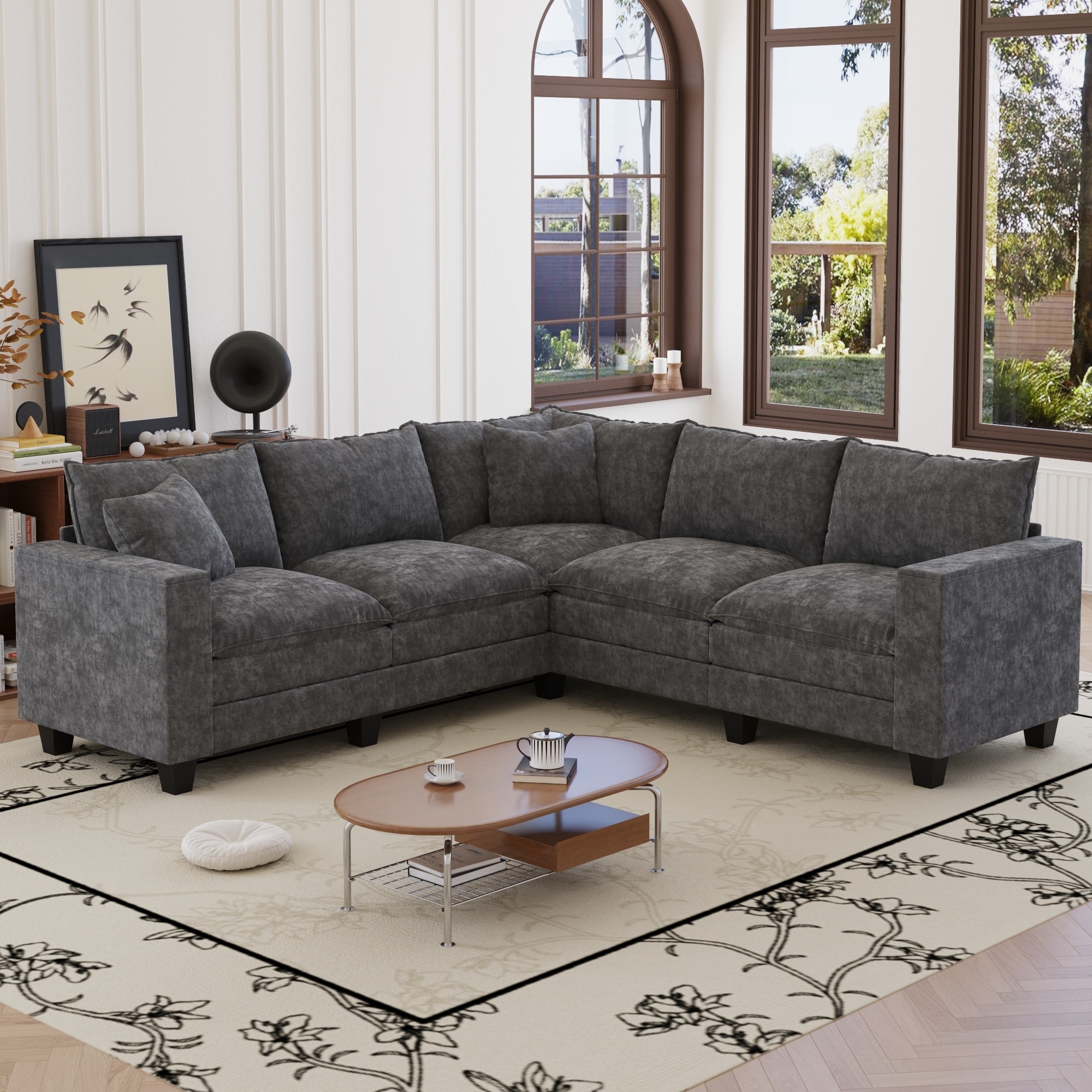 GDFStudio - Chenille L-Shaped 97" 5-Seat... |