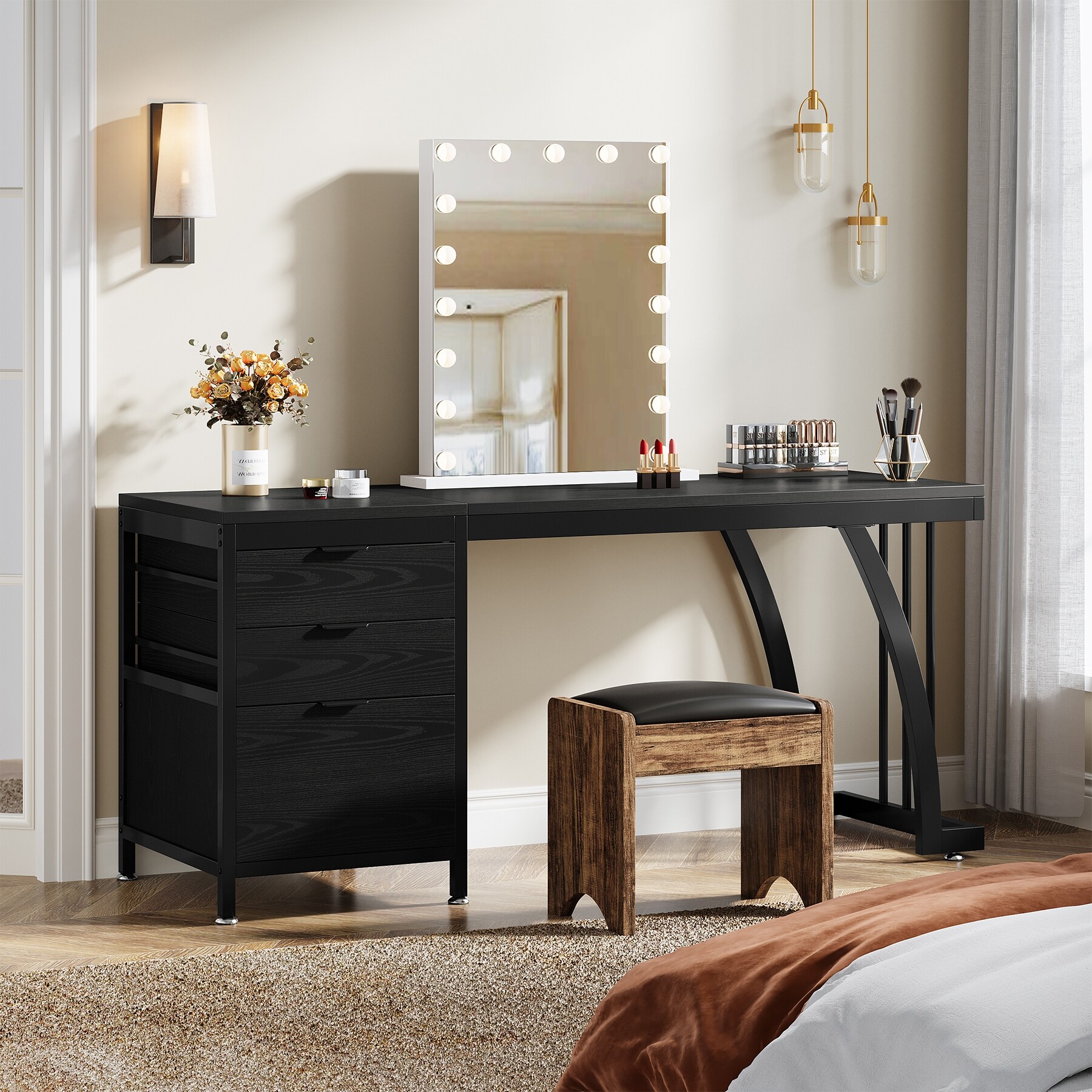 Vanity Desk 59" Dressing Table, Chic Mak... |