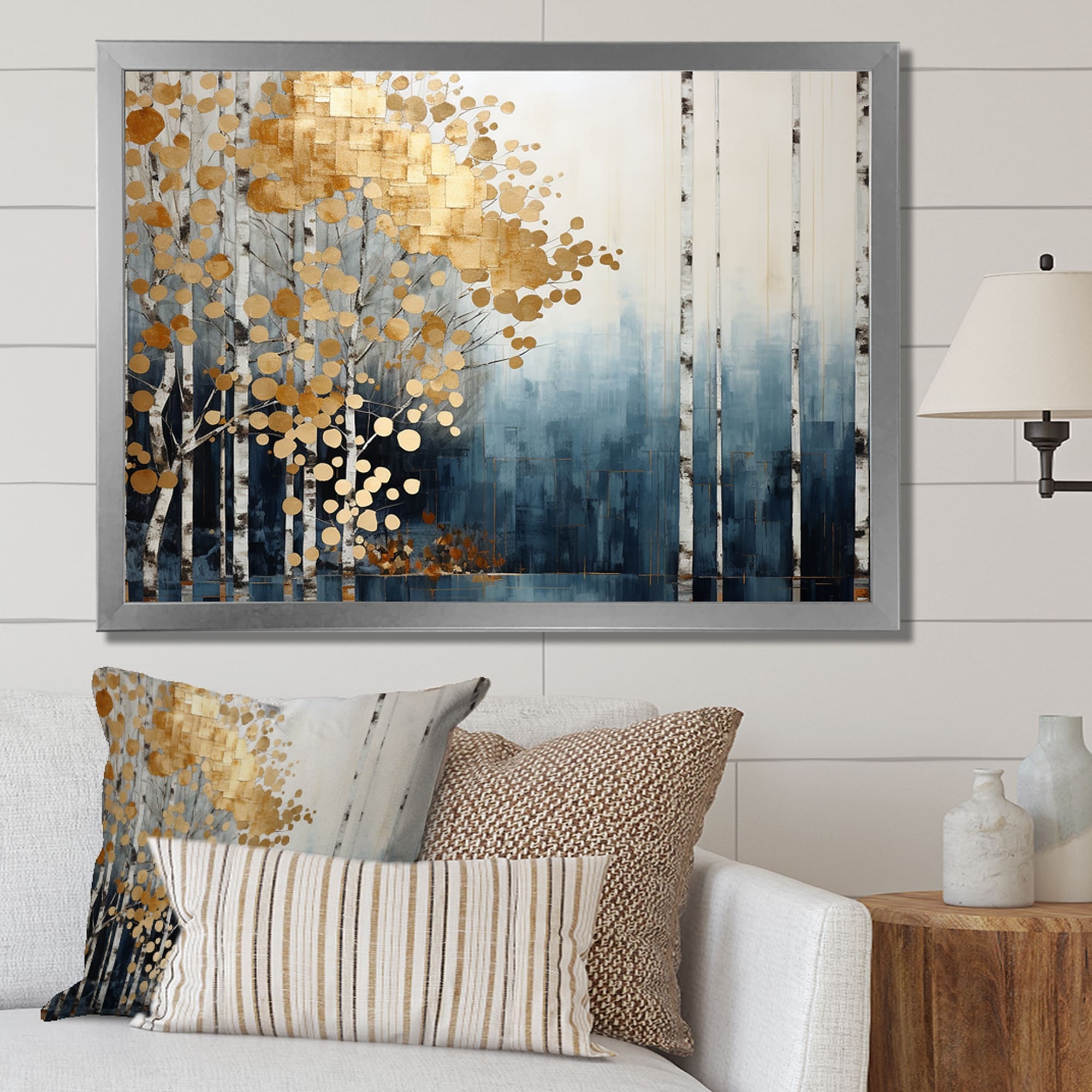 Designart "Minimalism Blue And Gold Fore... |