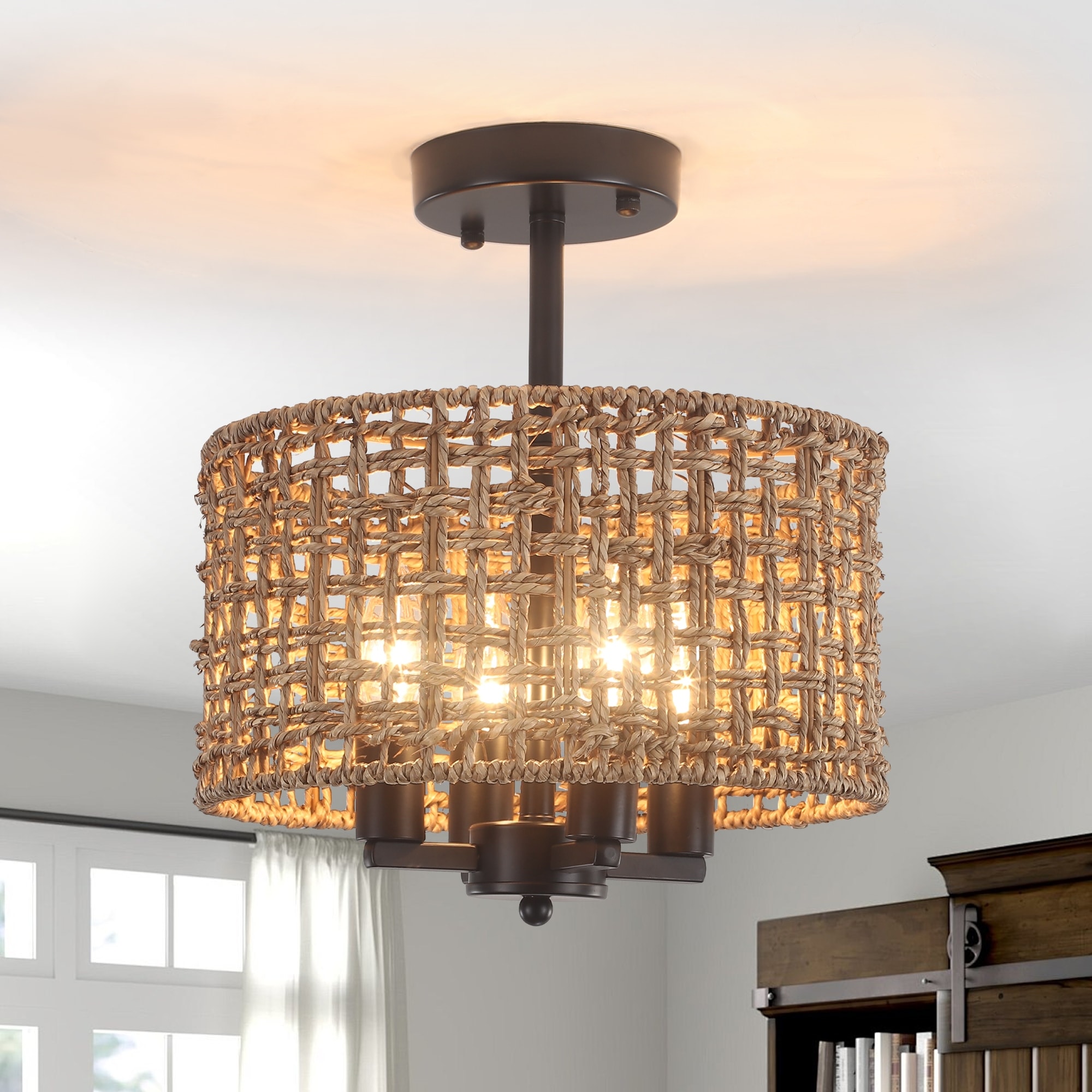 4-Light Bohemian Seagrass Semi Flush Mou... |