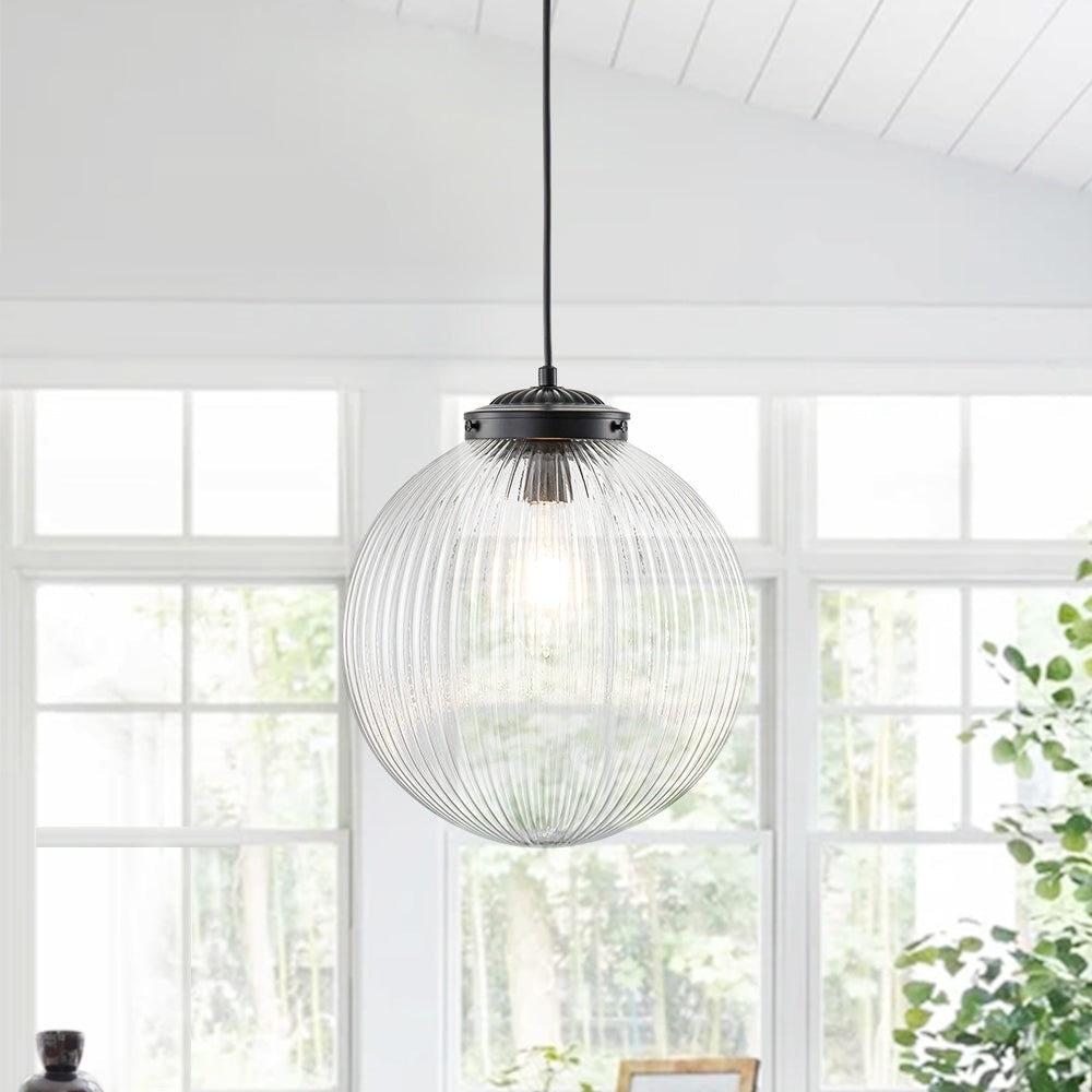Mid-century 11.8 in 1-Light Ribbed Glass... |