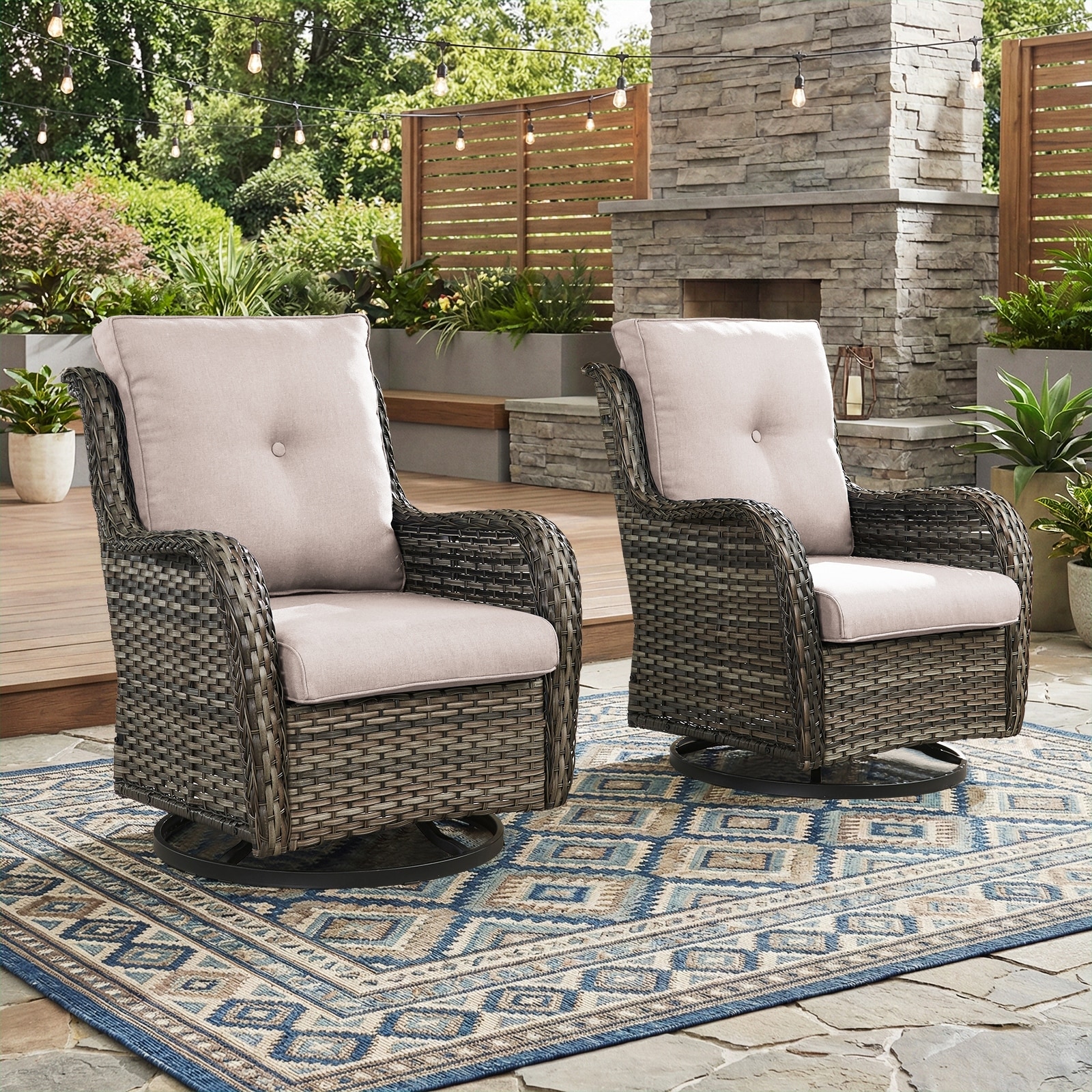 Pocassy Outdoor Wicker Rattan Patio Swiv... |
