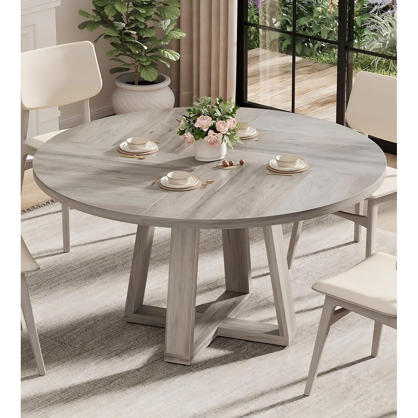 Round Dining Table for 4-6 People,47" Di... |