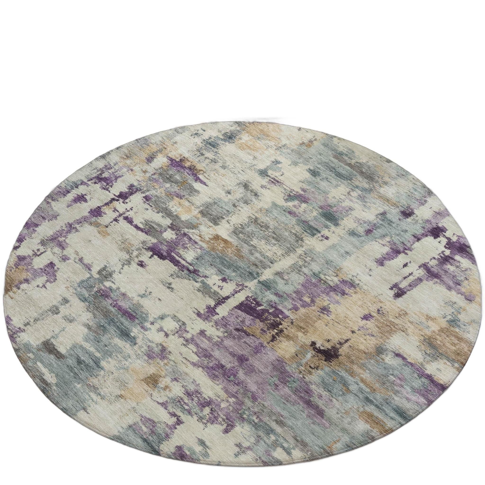 8' Linen Purple And Gold Round Abstract ... |