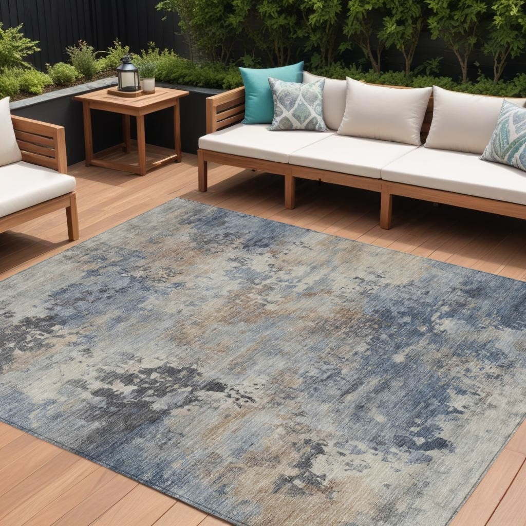 8' X 10' Denim Blue Beige And Charcoal A... |