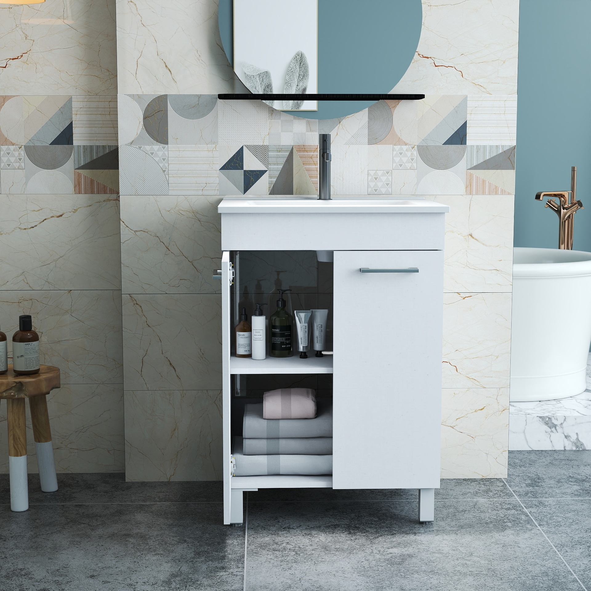 This 24-inch floor-mounted bathroom vanity is a perfect blend of style and functionality, designed to enhance any modern bathroom.