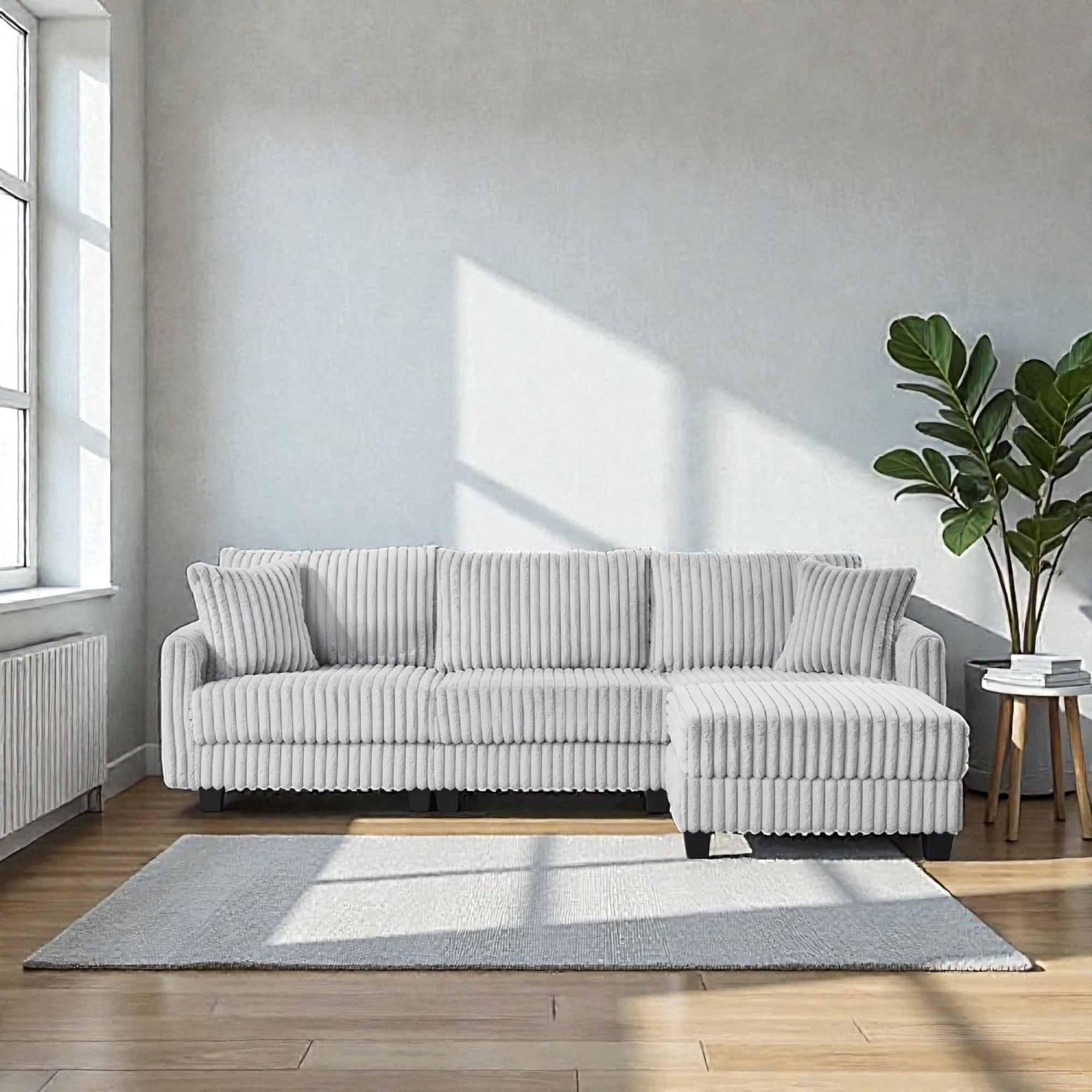 L-Shaped Modular Corduroy Sofa with Free... |