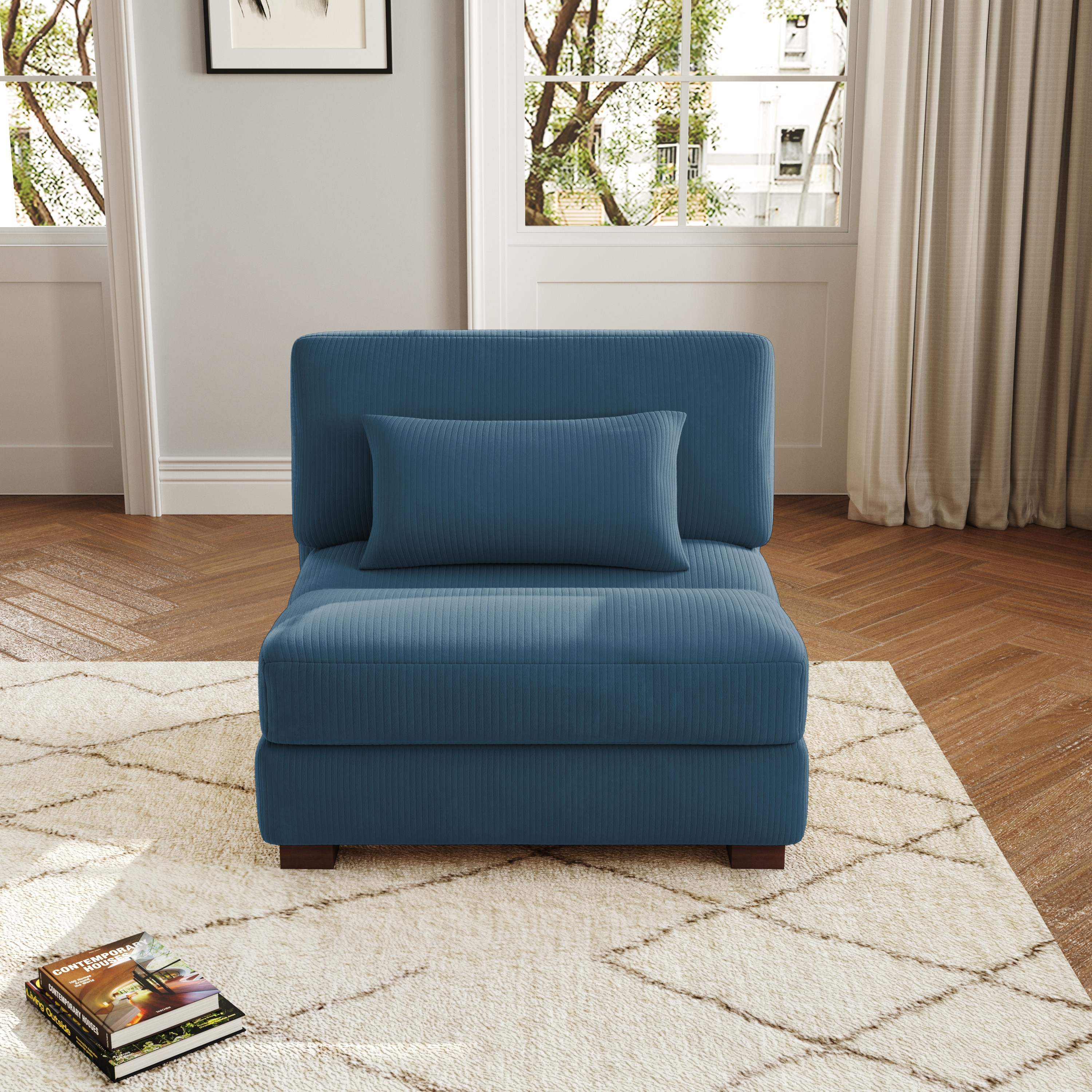 This corduroy sofa features dual-layer cushions and three neck pillows, providing exceptional support whether you're lounging, reclining, or entertaining. Slow-rebound high-density sponge ensures a soft, plush feel for long-lasting comfort.