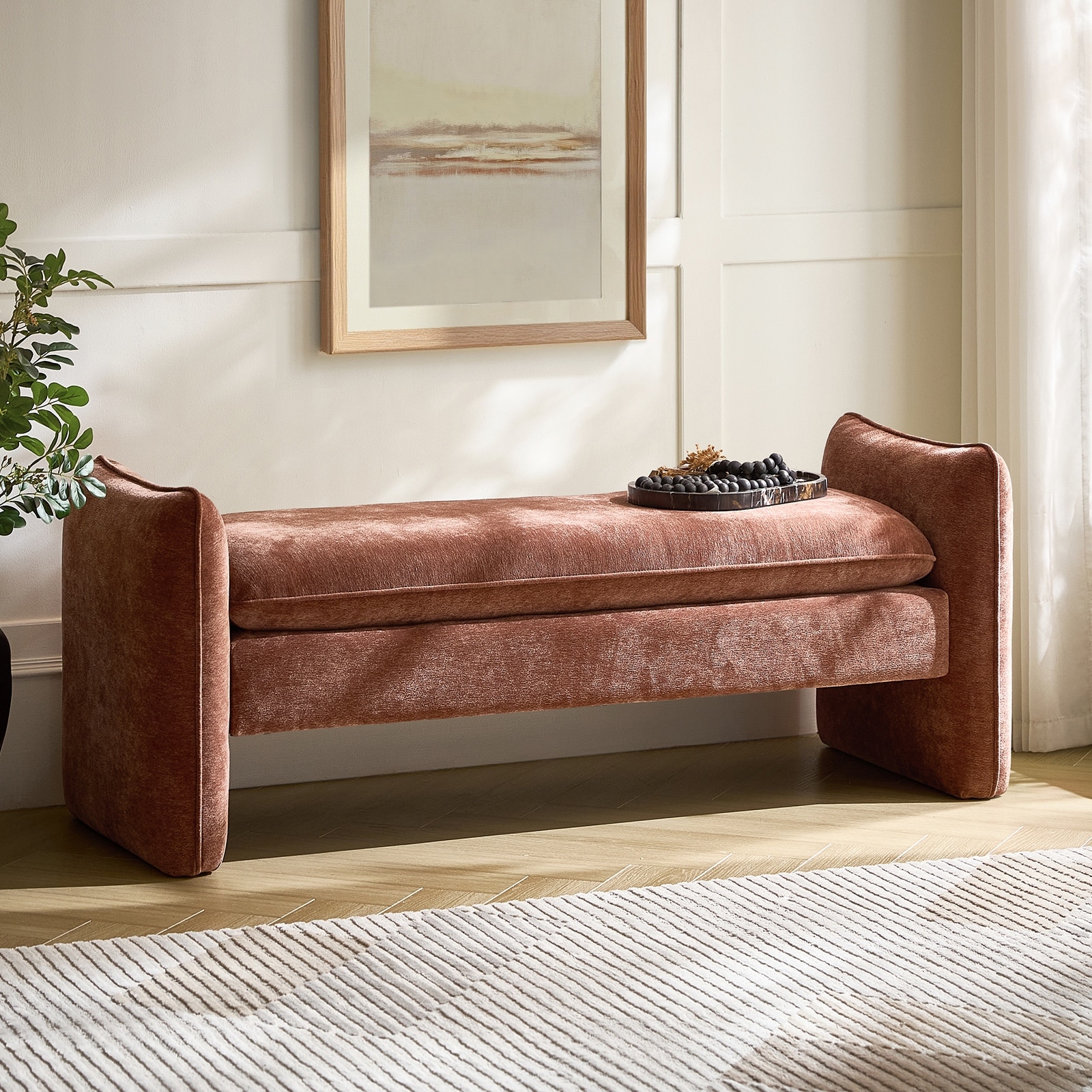 Ella 57.5"W Modern Chenille Fabric Uphol... |
