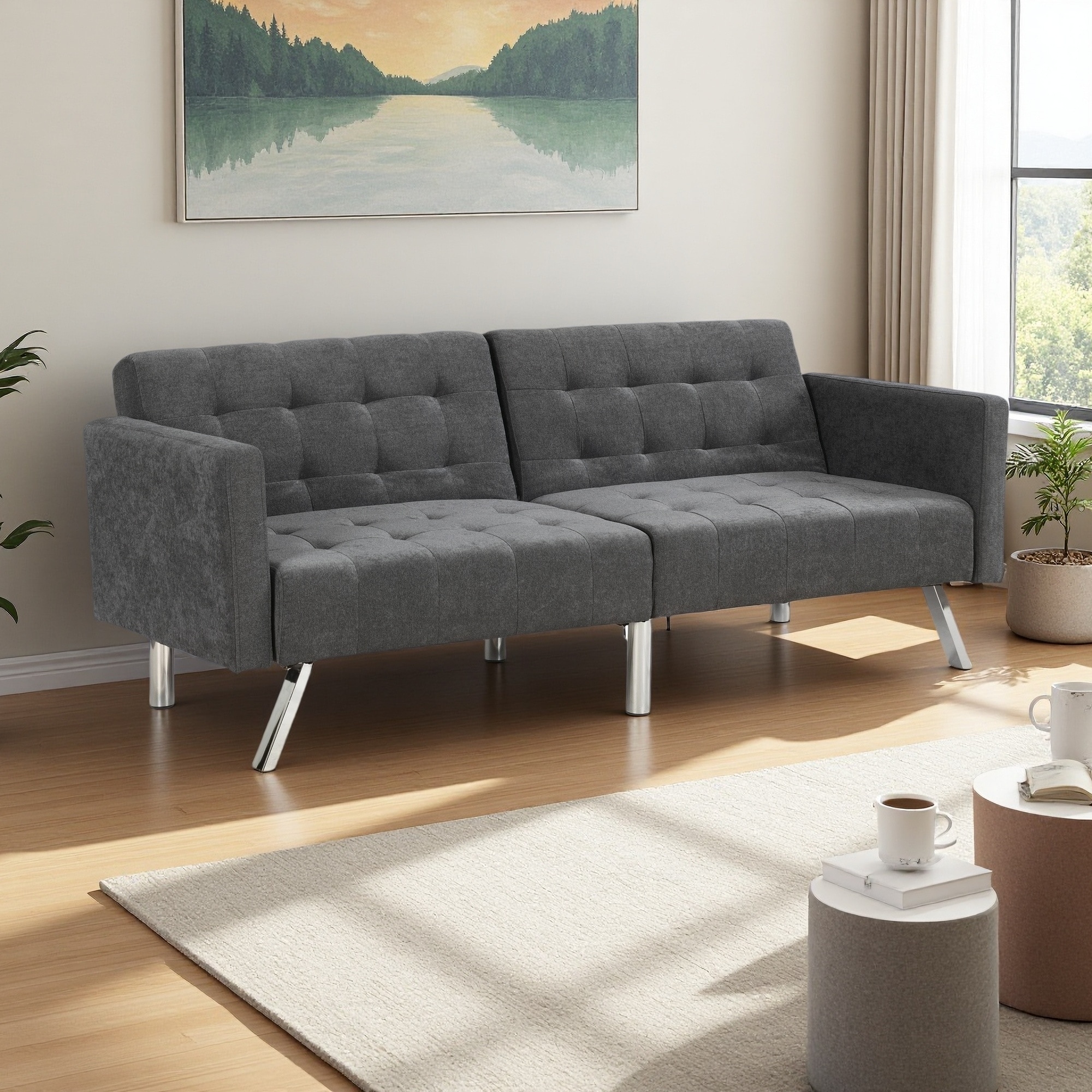 75" Linen Convertible Sofa Bed, 3-Positi... |