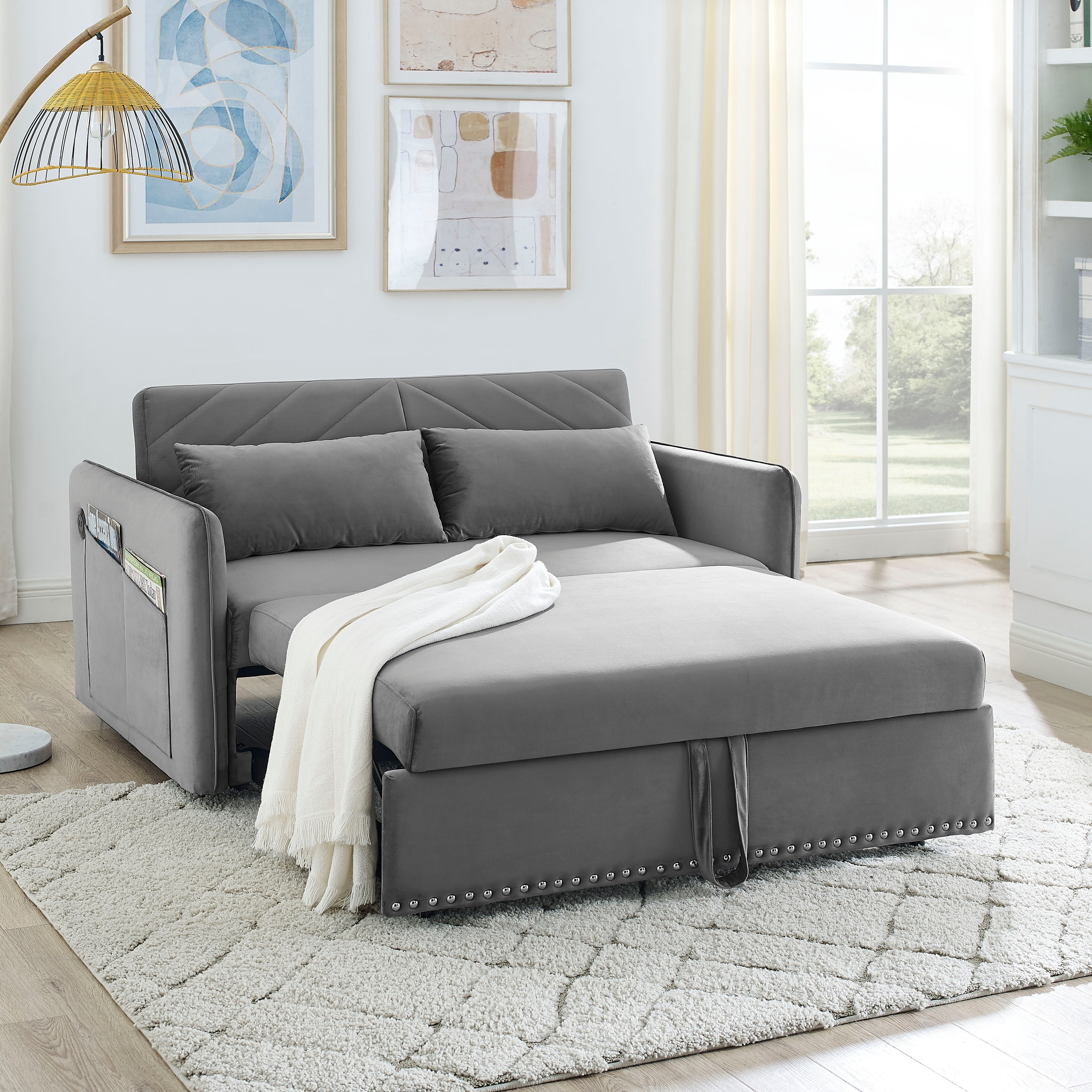 Velvet Pull-Out Sleeper Sofa Bed with Ad... |