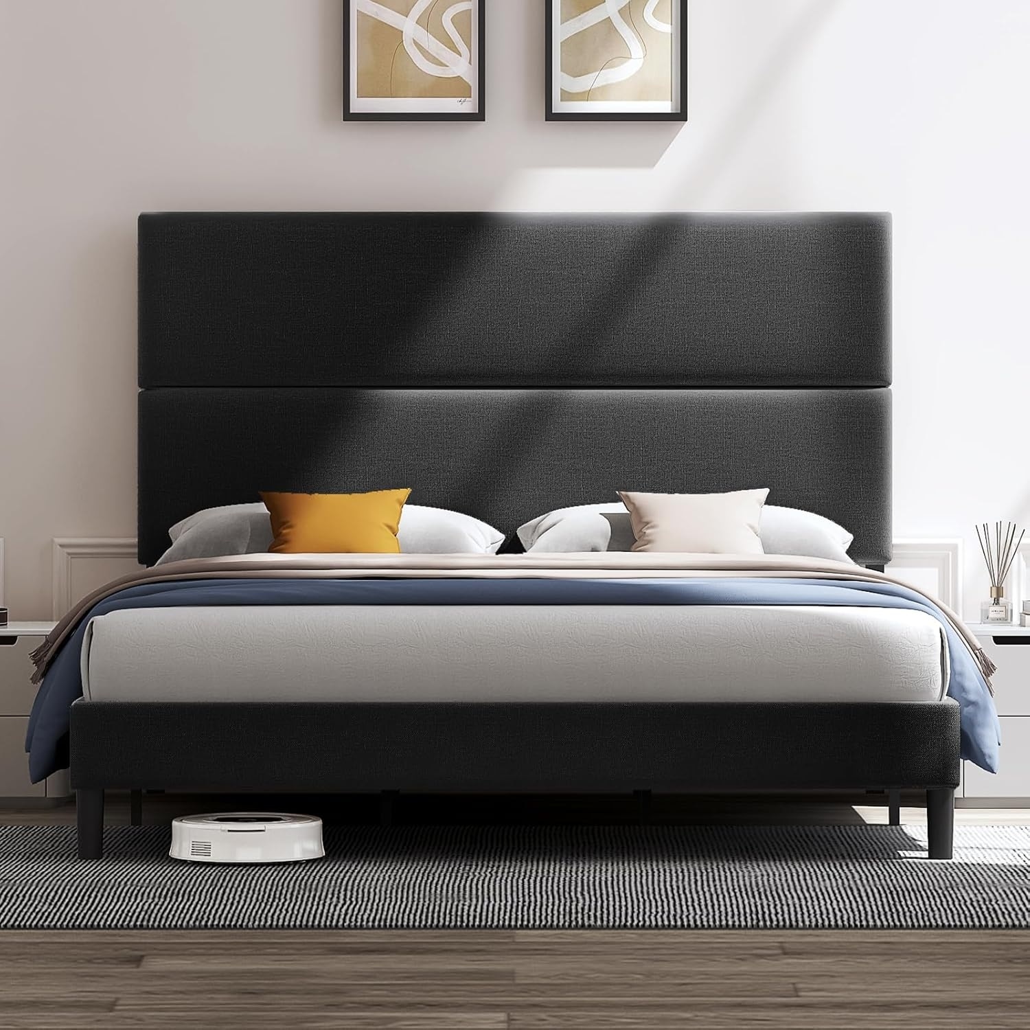 Velvet Fabric 【Space Saver Drawers】 4 wire netting drawers with rollers under the platform bed frame, not only providing ample space for bed sheets, accessories, off-season clothing and more but also easy to clean under the bed.