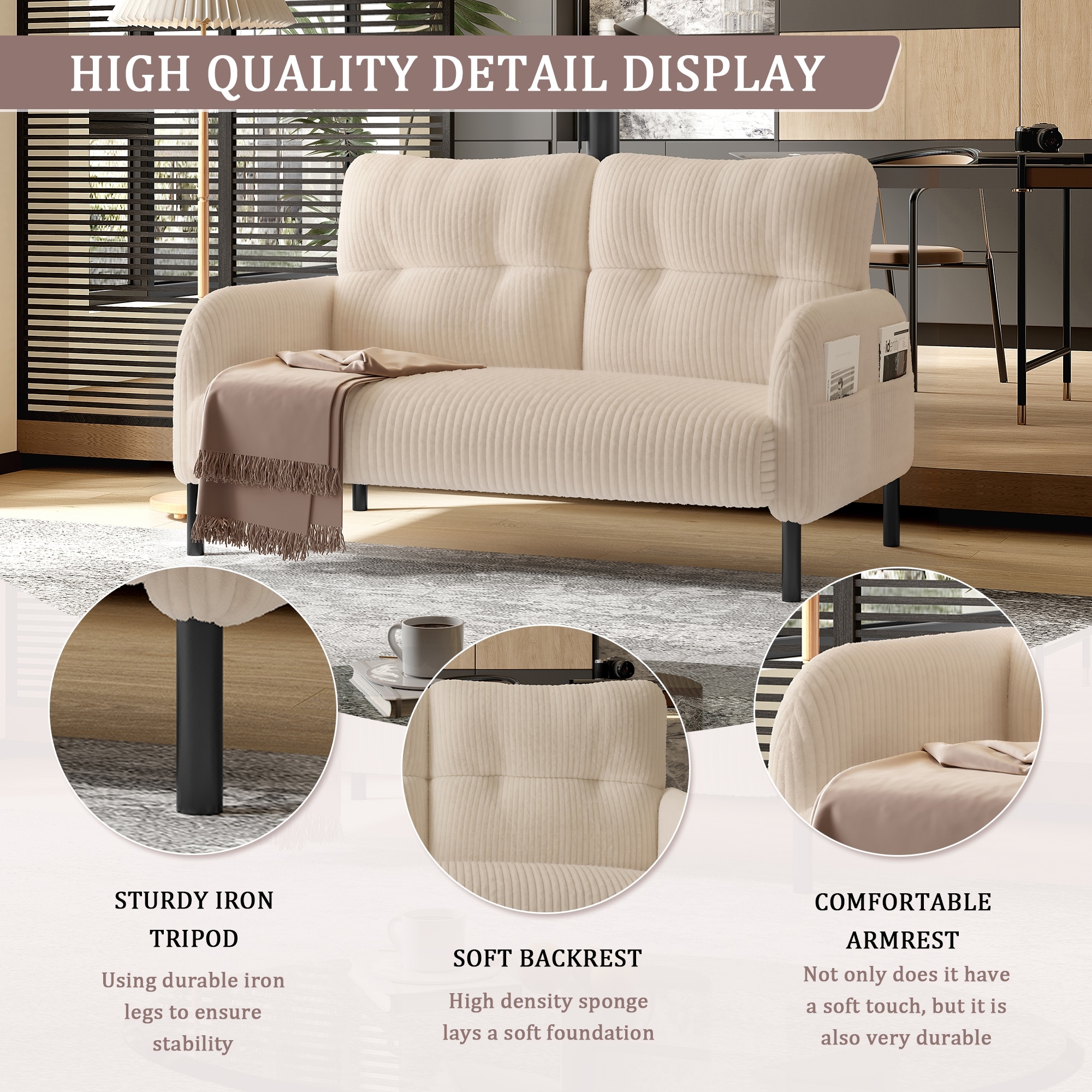 Small Corduroy Upholstered Loveseat Sofa... |