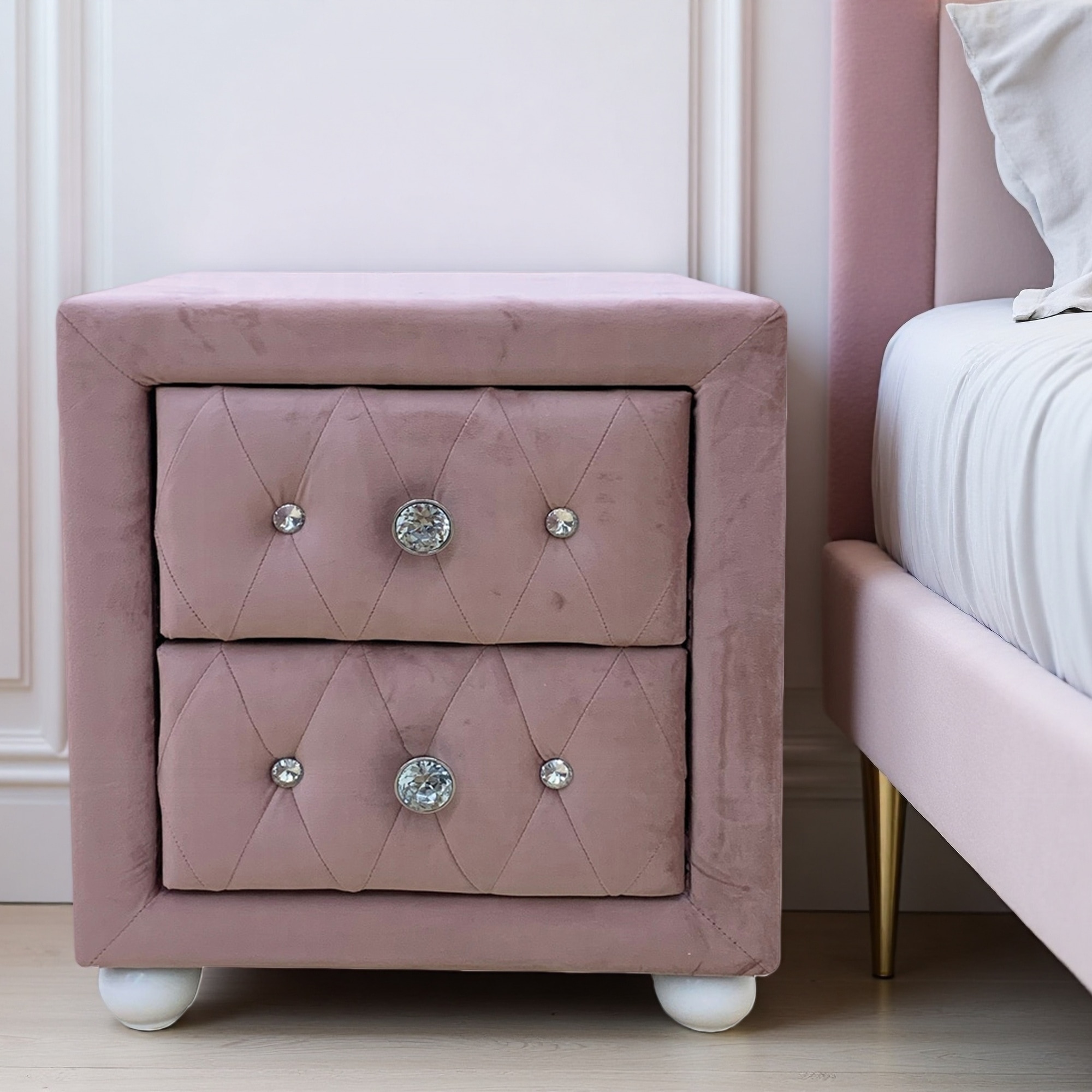 17"L Wooden Fabric Upholstered 2-Drawer ... |