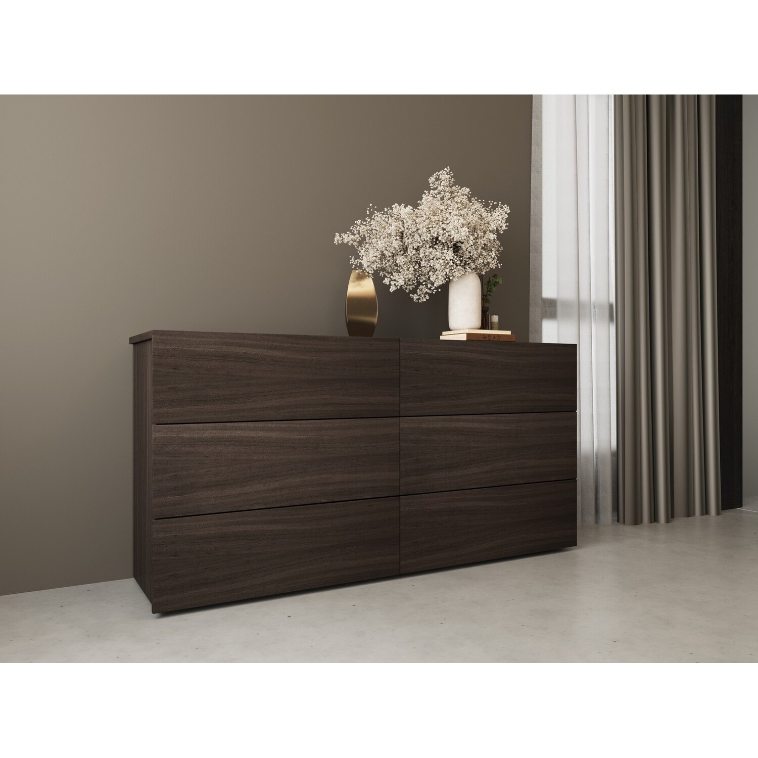 Dark Oak Melamine Dresser with Smooth Gl... |