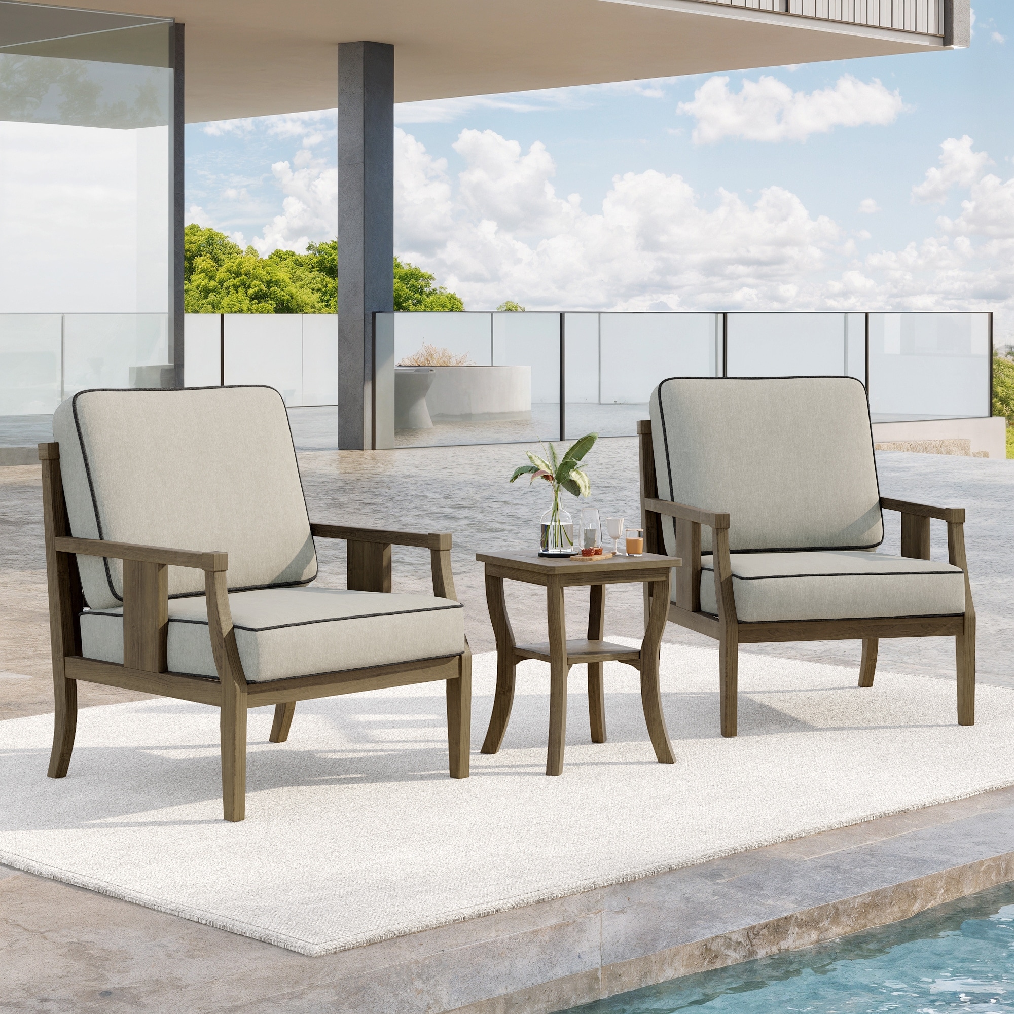 3-Piece Teak Wood Outdoor Armchair Set w... |
