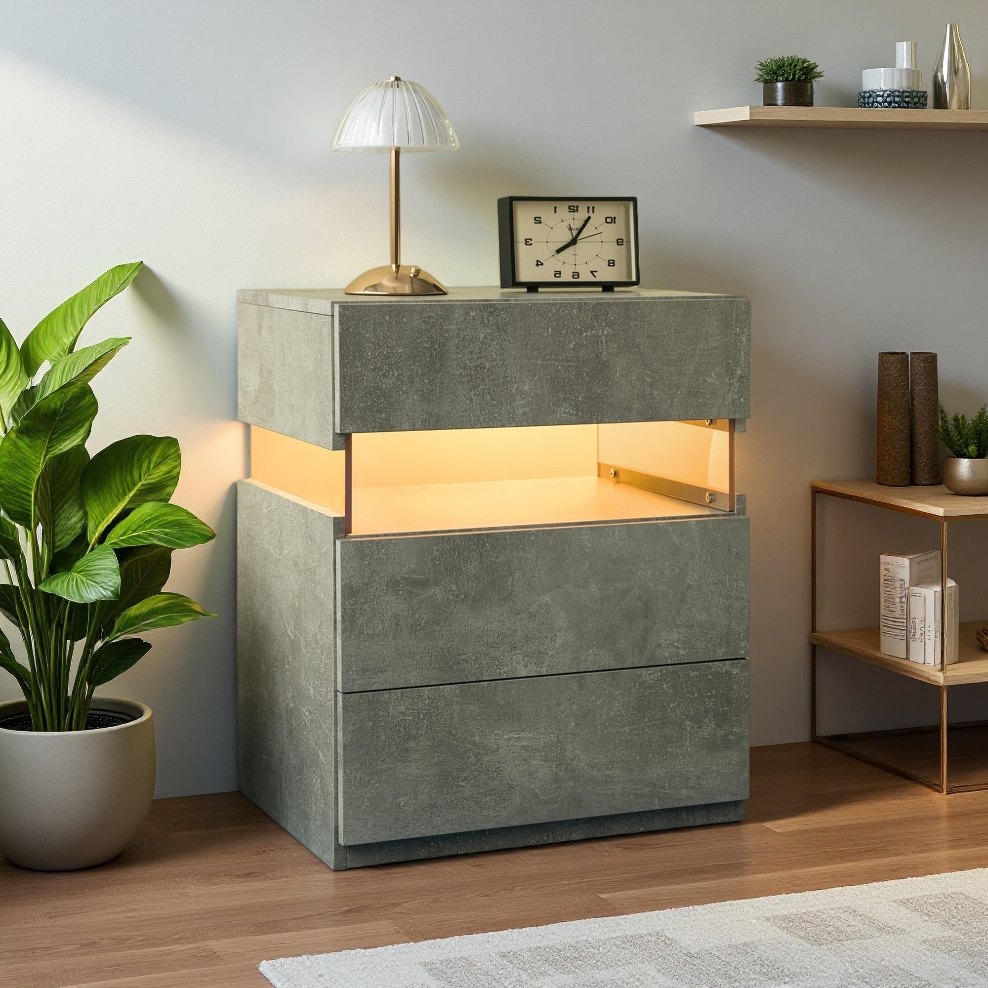 19.67"L LED 3-Drawer Acrylic Nightstand ... |