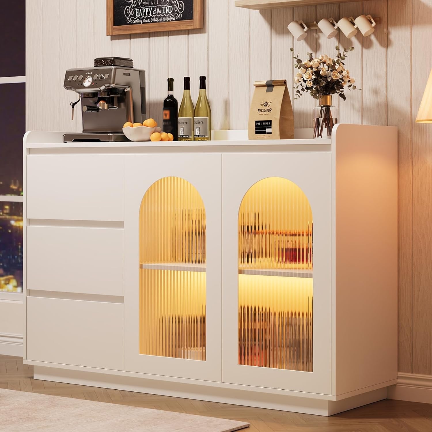 48" White Sideboard w/ Glass Doors, 3 Dr... |