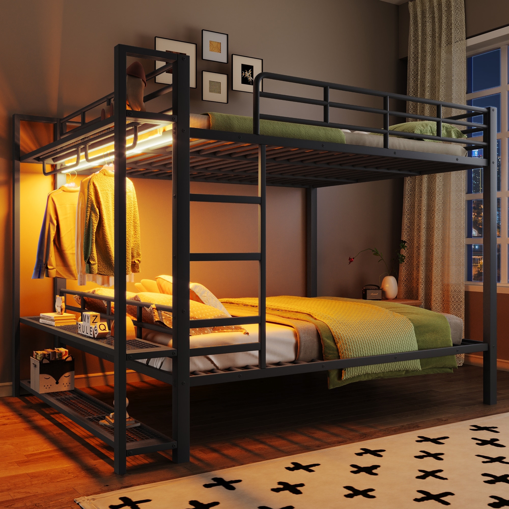 GDFStudio - Metal Bunk Bed with LED, Sto... |