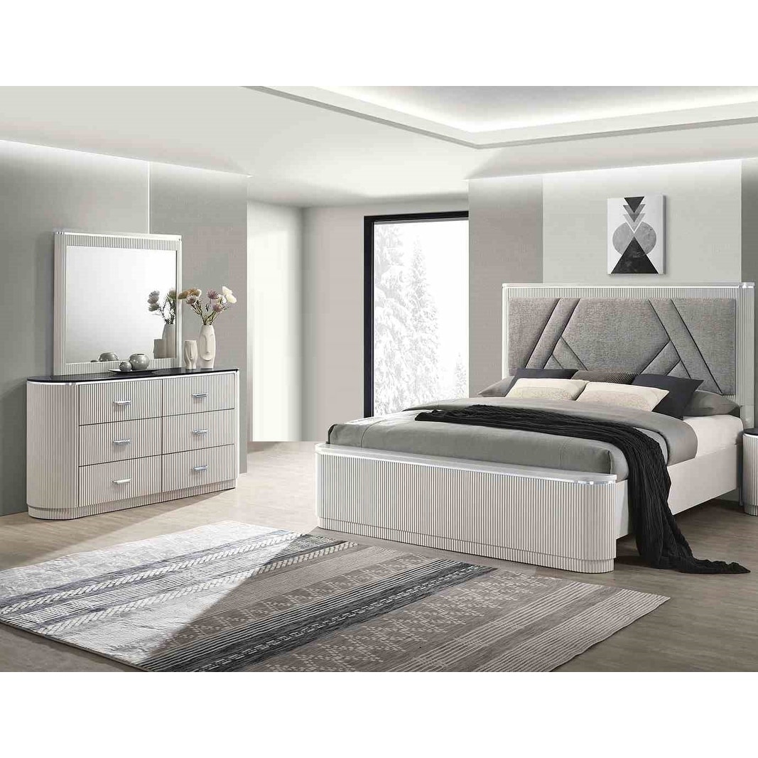 Modern Gray Finish 3pc Bed Dresser Mirro... |
