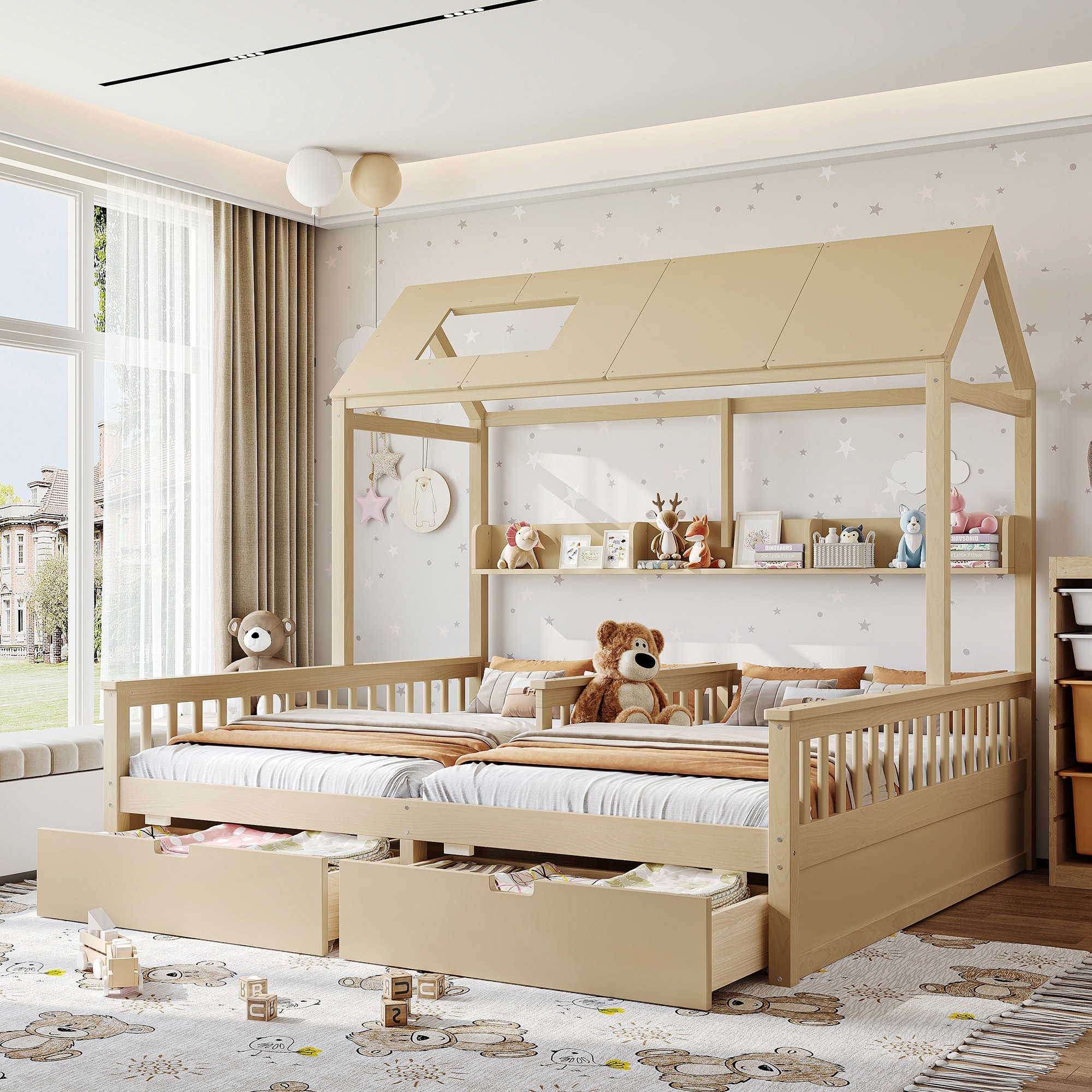 Double Twin Platform Bed with Storage Sh... |