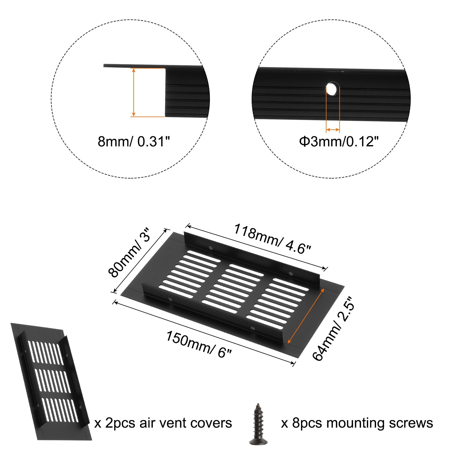 Description: 1. Material: The ventilation grille is made of aluminum alloy, an anodized surface finish, with corrosion resistance, insulation, and heat resistance, good bending strength, is not easy to deform, and can be used for a long time. 2.