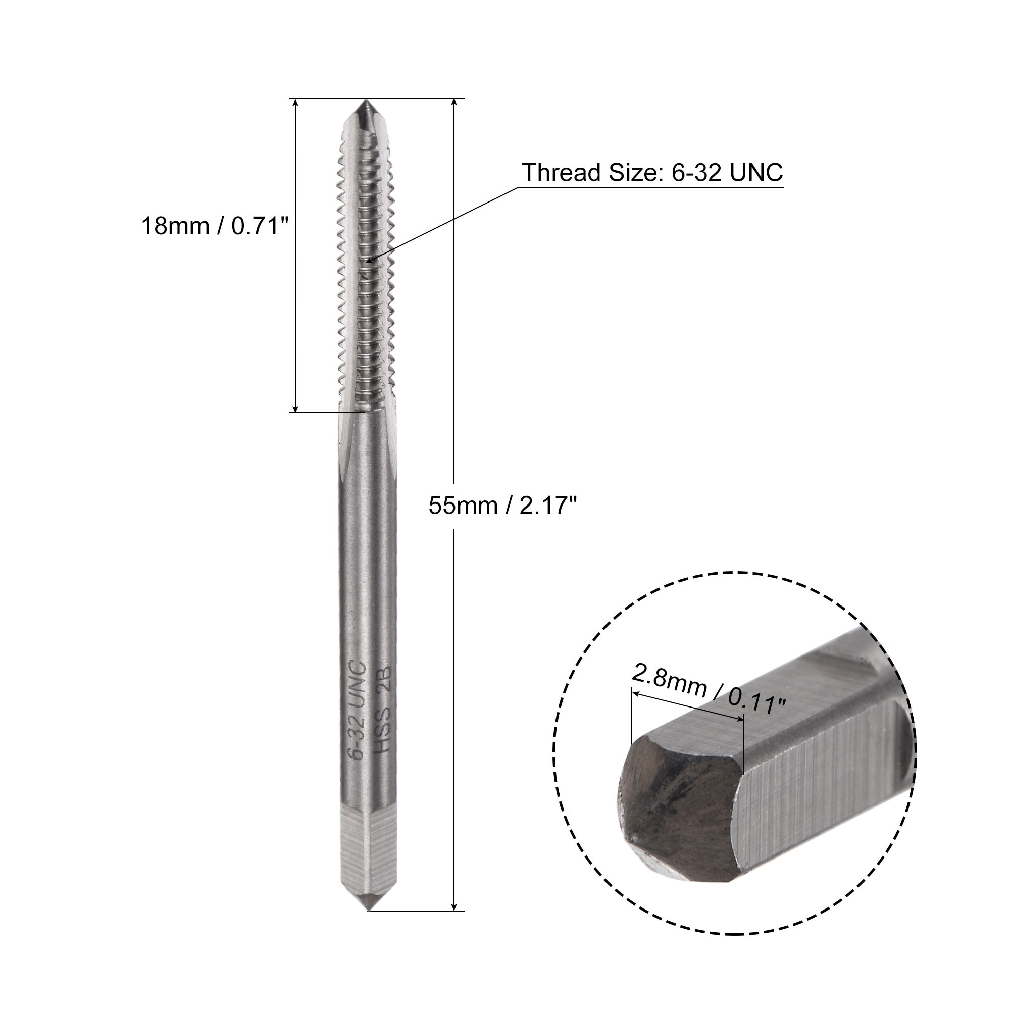 Specifications: Thread Size: 5/16-18 UNC Thread Length: 23mm / 0.91" Total Length: 70mm / 2.76" Square End Size: 5mm x 5mm / 0.2" x 0.2" Thread Tolerance Grade: H2 Material: HSS (High Speed Steel) Finish: Uncoated Cutting Direction: Right Hand Numbers of…